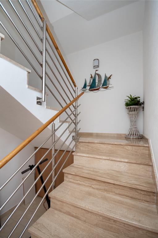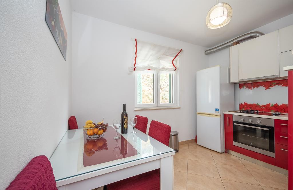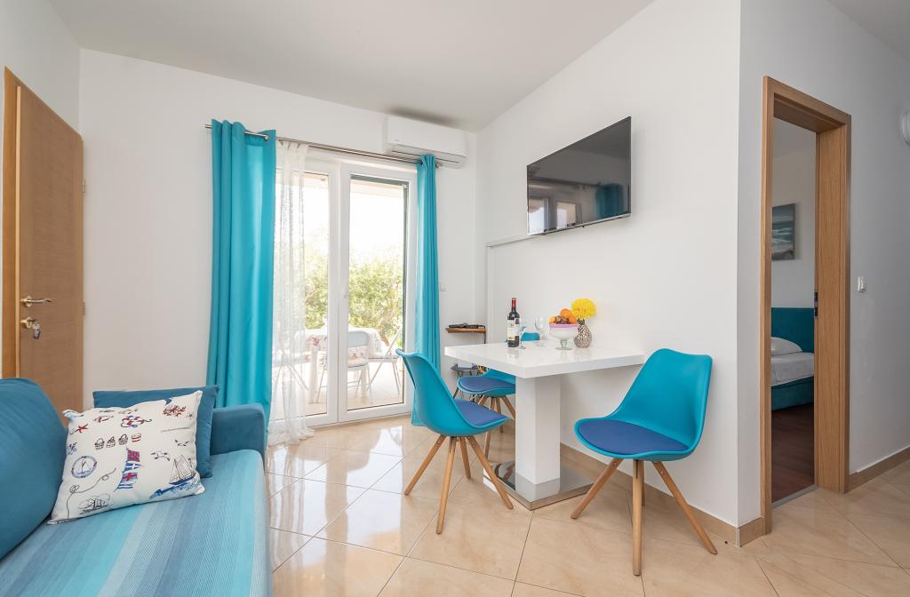 Gli appartamenti Rejo si trovano nella cittadina di Dugi Rat, sulla Riviera di Omis, in un ambiente tranquillo con splendide viste panoramiche sul mare e sull'isola di Brac. Dal centro del luogo siamo a circa 400 metri e tutte le strutture turistiche si trovano in bizini. Abbiamo 2 appartamenti in affitto. Ogni appartamento è adatto per un massimo di 4 persone, più adatto per 2 adulti e 2 bambini. Entrambi gli appartamenti sono situati al primo piano. Ogni appartamento dispone di 1 camera da letto con un grande letto matrimoniale, un soggiorno con divano letto per 2 persone, una cucina, un bagno, un balcone con vista sul mare e una terrazza sul lato nord della casa.