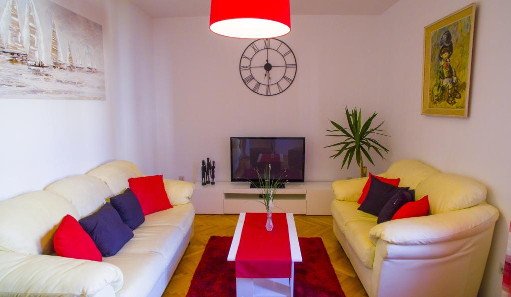 Apartment SJ si trova a Dugi Rat. Questo appartamento offre un barbecue e un giardino. L'appartamento è dotato di 2 camere da letto, soggiorno, cucina con sala da pranzo e forno e 1 bagno. Una TV a schermo piatto è disponibile. L'appartamento ha una terrazza ed è a soli 2 minuti a piedi dal mare e dalla spiaggia più vicina. Se vuoi scoprire la zona, è possibile pedalare nella zona circostante. L'Apartments SJ dista 20 km da Spalato e 42 km da Makarska. L'aeroporto di Spalato dista 36 km.