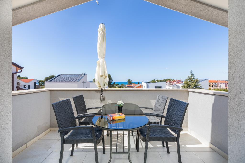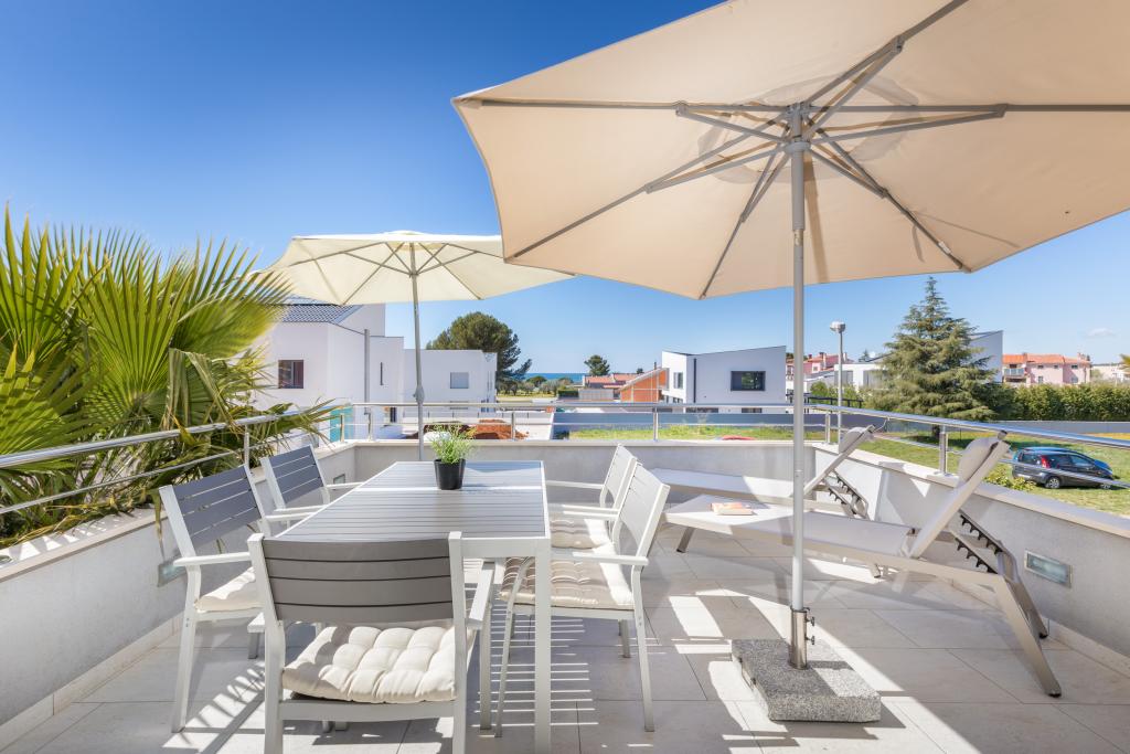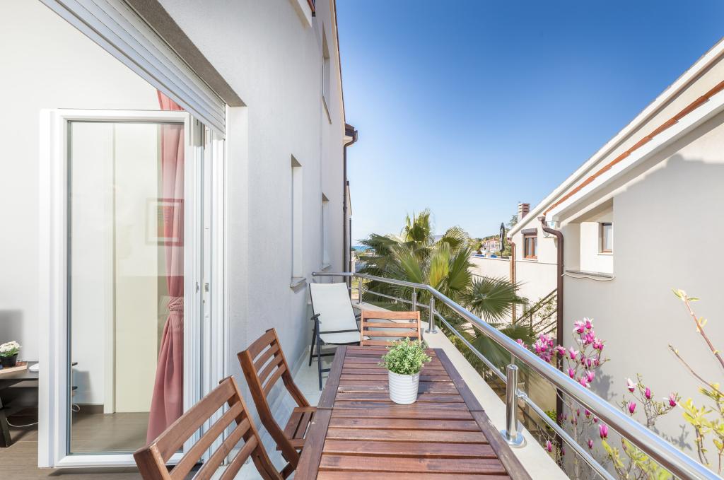 Casa moderna con 5 appartamenti, con vista sul mare, a 200 m dalla spiaggia. Ogni appartamento dispone di un posto auto davanti alla casa. Vicino all'edificio c'è un programma completo necessario per una piacevole vacanza. (negozi, spiaggia, medico, ristoranti, bar, centro storico, ecc.) Tutto questo è raggiungibile in pochi minuti a piedi.