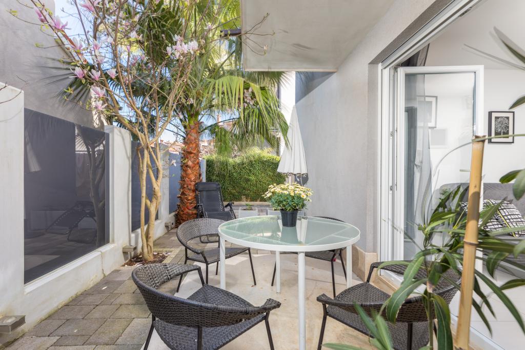 Era molto tempo che non ci trovavamo in un appartamento così bello, ben attrezzato ed elegante. Ad ogni passo, si può vedere che il proprietario ha pensato a tutte le piccole cose di cui tutti hanno bisogno per godersi questo appartamento. Due condizionatori d'aria, tutte le stanze hanno persiane, grandi armadi e molto spazio per riporre. Hanno anche un estintore. Il bagno ha una doccia di qualità e ha un riscaldatore di spazio aggiuntivo. C'erano anche asciugamani di qualità. Cucina, unica. Un ampio set di contenitori di qualità e un ampio set di piatti. Barattoli per ogni occasione e un ampio servizio di posate. Contiene una lavastoviglie con pastiglie per lavastoviglie. Insomma, la cucina è attrezzata come a casa. Sulla terrazza sono tutte sedie, tavolo, sdraio e ombrelloni nello stesso stile. L'appartamento è bello come se fosse stato progettato da un architetto d'interni professionista. Anche i dintorni dell'appartamento sono molto belli. Ogni appartamento dispone di un citofono. Consigliato caldamente a chi ama vivere o dormire in un appartamento bello e pulito.
