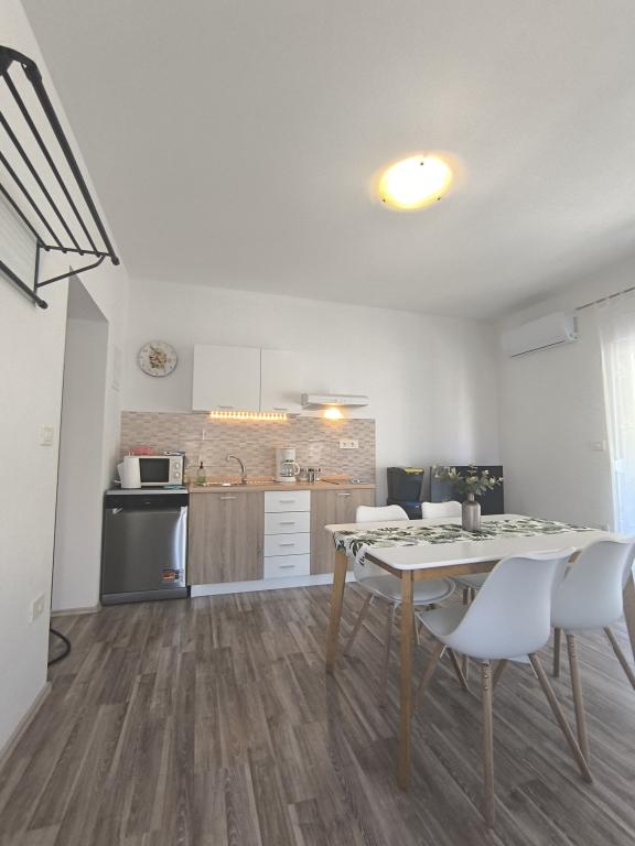 Abbiamo trascorso una vacanza fantastica in un appartamento bellissimo, luminoso e moderno. La comunicazione è stata eccellente, anche se non parlo croato né un inglese perfetto! Un'accoglienza calorosa, un frigorifero rifornito di bevande e frutta, e frutta del giardino per la colazione del giorno dopo. Cosa si può chiedere di più in termini di ospitalità?! Sempre disponibili a rispondere alle domande, e ci hanno persino portato la biancheria (asciugamani, lenzuola, ecc.) per un cambio. Grazie per il tempo meraviglioso trascorso insieme e per le deliziose olive come regalo di addio. Torneremo sicuramente!