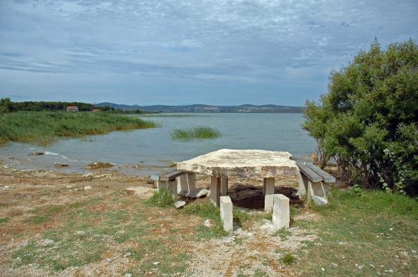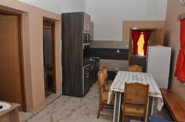 Benvenuti negli appartamenti Dora. Affittare due appartamenti separati nuovo di zecca (certificazione energetica B) sono in Gornji Karin, vicino a Zara e Cittanova. Gli appartamenti hanno vista sul mare e Velebit, si trovano a 300 metri dalla spiaggia, ognuno ha 60 m2 ed hanno un ingresso separato. Essi sono dotati di interni di qualità: soggiorno e cucina, due camere da letto, un bagno privato con doccia e disimpegno. Gli appartamenti dispongono di aria condizionata, wi-fi, TV satellitare, frigorifero, forno, piano cottura a induzione, forno a microonde, posate e bevande. Un appartamento ha una terrazza coperta e balcone. Completamente cortile è lastricata di pietra naturale da Benkovac. Nel cortile sono due tavole di pietra con panche di quercia, piattaforma per la piscina per bambini, due grandi spiedo (alla griglia) con una scrivania, come parte di un ampio parcheggio.