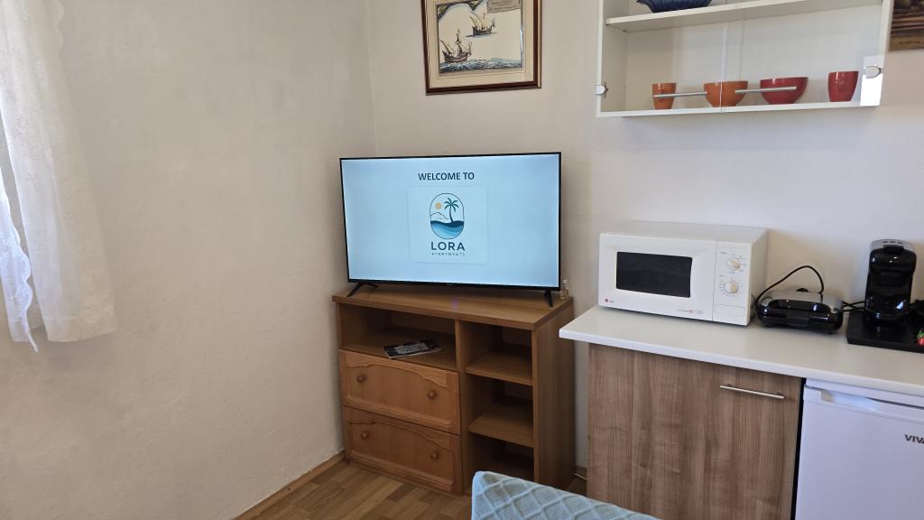 Lora Apartments offre agli ospiti una serie di servizi e attrezzature aggiuntivi inclusi nel prezzo del soggiorno, con l'obiettivo di garantire il massimo comfort e una vacanza senza pensieri. Ogni appartamento è completamente attrezzato e include una macchina da caffè con caffè di benvenuto, bollitore, tostapane, macchina per il ghiaccio, cassaforte, asciugacapelli potente con accessori, bilancia digitale, ferro da stiro, ferro da stiro a vapore, asse da stiro e aspirapolvere senza fili. All'interno della struttura, gli ospiti hanno a disposizione due biciclette, due SUP (stand-up paddleboard), un carrello da spiaggia pieghevole e attrezzature aggiuntive per soggiornare in riva al mare. Aiutiamo gli ospiti a organizzare escursioni nella zona, noleggiare una barca (con o senza skipper), trasferimenti e prenotare ristoranti. È possibile ottenere consigli su spiagge, passeggiate, percorsi ciclabili e attrazioni locali. Su richiesta, è possibile fornire prodotti locali autentici come vino, olio d'oliva, miele e fichi, direttamente da produttori locali di fiducia. Tutti gli ospiti hanno a disposizione una connessione Internet Starlink veloce e stabile e i proprietari sono disponibili per tutta la durata del soggiorno.