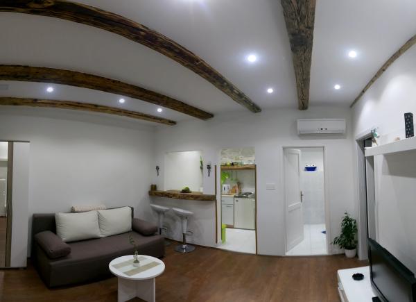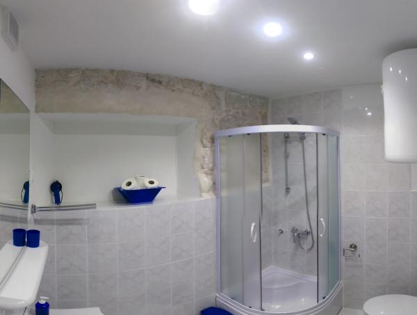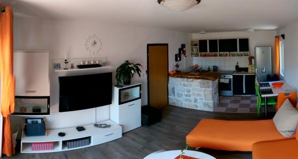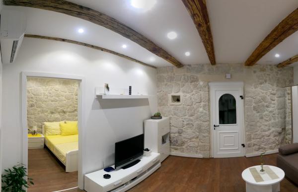 Casa in pietra con due nuovi appartamenti. La struttura si trova 5-6 minuti a piedi in discesa dal centro di Graz, spiaggia, mare, ristoranti, caffè e negozi. Il primo appartamento (2 2) appartamento nella parte in pietra della casa al piano terra, completamente ristrutturato nel vecchio stile dalmata. Ha una camera con letto matrimoniale e un soggiorno con divano che si estende le dimensioni di un altro grande letto a due piazze. Ha anche una cucina e un bagno con doccia. E 'dotato di aria condizionata, internet, TV LCD, satellite. Si ha il proprio giardino con tavolo e sedie. Il secondo appartamento (4 2) si trova al primo piano, ha due camere da letto con due letti matrimoniali, un ampio soggiorno con un ampio divano letto matrimoniale, grande cucina completamente attrezzata, bagno e balcone con tavolo e sedie. L'appartamento è dotato di connessione internet, aria condizionata, TV LCD e satellitare. Il parcheggio si trova dietro la casa ed è gratuita. Tutti gli ospiti possono utilizzare tutto il giardino, cucina esterna, una stanza con una lavatrice, barbecue e un grande tavolo con sedie