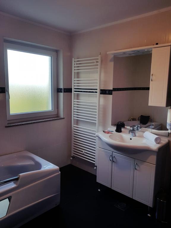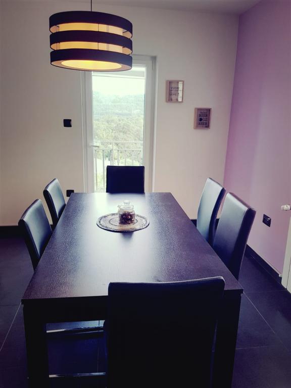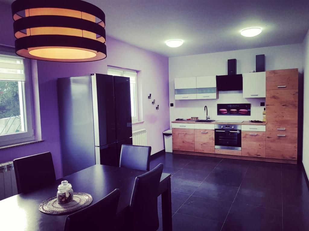 Casa per vacanze in una zona tranquilla del fiume, a Jelenje na Grobniku, a soli 15 minuti dal centro del fiume o dal mare e dalle spiagge ea soli 5 minuti dalla pista e dall'aeroporto Grobnik ea 15 minuti da Platak e dalla stazione sciistica. Casa vacanze completamente rinnovata, moderna, ariosa e facile da usare. Su una superficie di oltre 250 mq su due piani collegati da scala interna c'è tutto il necessario per ospitare 8 persone. 3 camere da letto (due con ampio letto matrimoniale e una con possibilità di separare due letti secondo necessità) e un soggiorno con ampio divano per 2 persone. ogni camera è dotata di TV satellitare mentre le due camere più grandi sono dotate anche di scrivania. La casa dispone di due bagni, di cui uno al piano inferiore accanto al soggiorno, e l'altro nella camera da letto più grande che dispone anche di balcone. Il piano terra dispone di un ampio soggiorno, sala da pranzo con cucina e scale di design interno che collegano il piano terra e il primo piano. Al piano interrato c'è una palestra, servizi igienici e biliardo e bar.