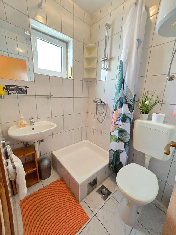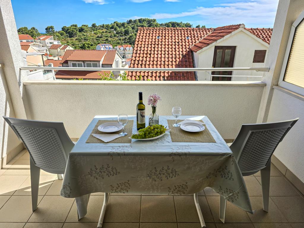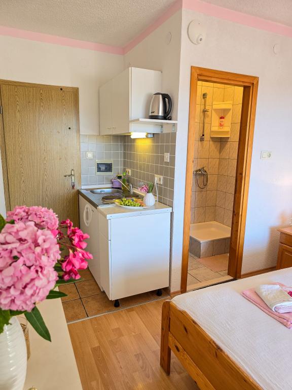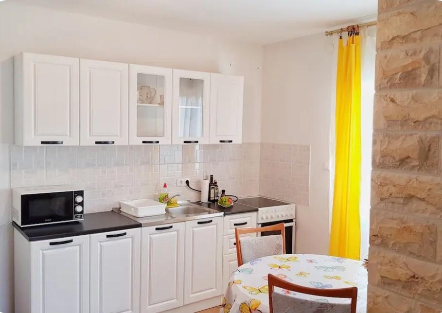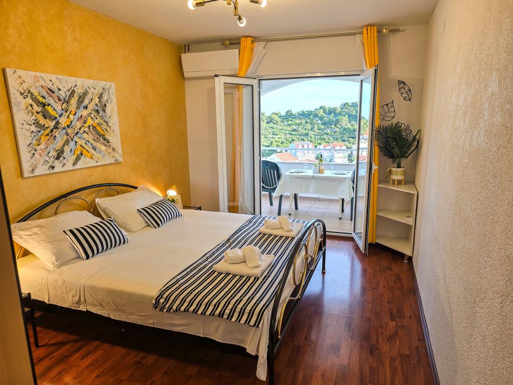 Grande smjetsaj, ottima vista dal balcone, appartamenti molto ordinate; Persone molto cordiali, discreti, e molto accessibile a tutte le informazioni. Zona tranquilla, parcheggio proprio di fronte alla casa, negozio di alimentari vicino, 15 minuti a piedi dal centro. Plaza a bada Pokonji lungo il bellissimo, mare pulito, con diversi ristoranti, vicino al sentiero per la spiaggia ripida (grande formazione), ma ha un modo per aggirare da raggiungere in auto. Estremamente soddisfatto.