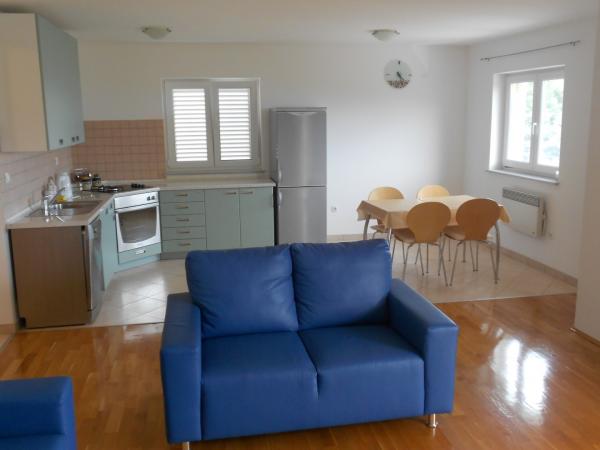 Bacic appartamento è spazioso e lussuoso appartamento di 75m2 e un balcone con una magnifica vista sul Quarnero. Si trova in un edificio di recente costruzione circondata dal verde, situato in una tranquilla strada laterale a circa 500 metri dal mare. L'appartamento si trova a 5 minuti a piedi dal centro di Icici, dove ci sono diversi ristoranti, un porto turistico, sette campi da tennis e una grande spiaggia pubblica con un parco giochi. La spiaggia è spaziosa, con vari servizi come i due campi da beach volley, scivolo d'acqua, parte della spiaggia è coperta di ciottoli, e in parte è coperto. E 'dotato di una grande lavastoviglie, lavatrice, internet wireless e un parcheggio.