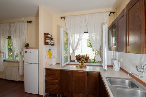 Appartamento Rubin si trova al piano terra, in una tranquilla strada senza uscita. Si compone di una cucina, soggiorno, due camere da letto (in una c'è la possibilità di letti combinate o singoli), stanza da bagno. Esso ha un balcone e una terrazza. Il parcheggio è previsto.