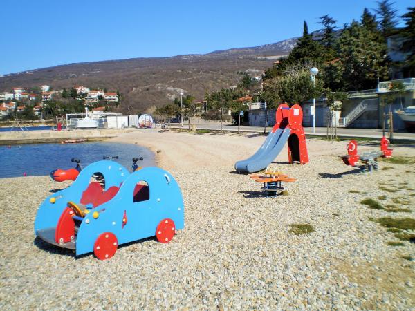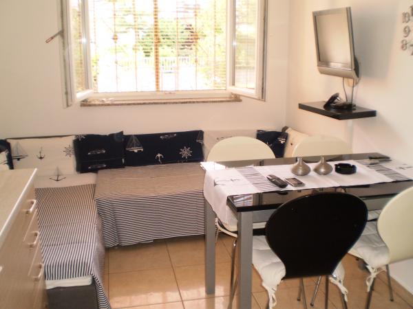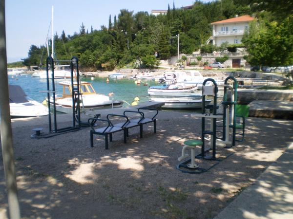 Jadranovo è una città turistica situata a nove chilometri dalla città di Crikvenica. 25 luglio la festa del suo patrono, San Giacomo Apostolo. Situato sulla costa adriatica a nord di sole, è noto per le sue numerose spiagge, calette e un mare cristallino, una sorta di fenomeno naturale e fango curativo nella baia Lokvišće. La baia Lokvišće trovato un gran numero di anfore rotte, che indica l'esistenza di un piccolo porto e magazzino. Appartamento 1 (43qm) si trova al piano terra. Si compone di una cucina, soggiorno completamente attrezzata e bagno. Il bagno ha un bacino WC, doccia e lavaggio. La cucina e soggiorno spazio comune, dove c'è un divano letto per 2 persone. camera da letto 2 persone. L'appartamento è dotato di aria condizionata e dotate di TV satellitare, DVD, forno a microonde e asciugacapelli. Gli ospiti hanno a disposizione mobili da giardino con barbecue. 2 posti auto. Il secondo appartamento è al primo piano (75m2). Esso ha un balcone