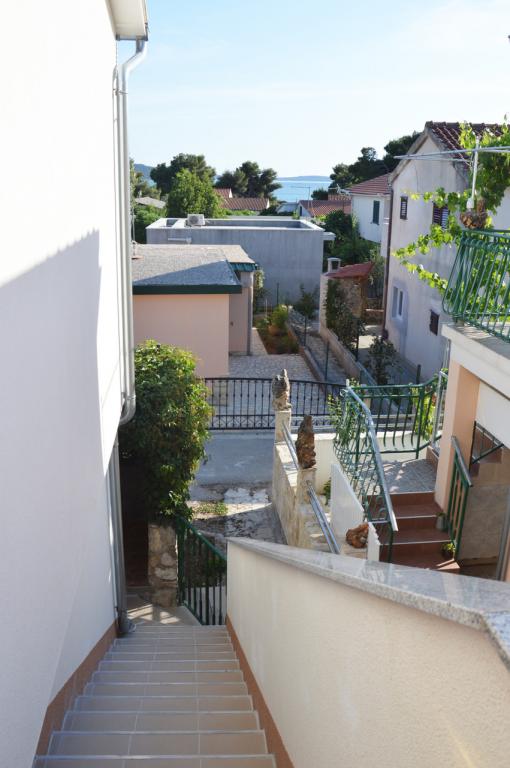 JADRIJA, tranquillo, piccolo posto in una pineta con molta ombra, aria profumata, diversi tipi di spiaggia- vacanza perfetta di genitori e figli, gli atleti ... spiaggia Jadrijska è nota anche per il gran numero di sport acquatici in offerta ai visitatori. Un luogo ideale per i surfisti e windsurfisti, vicino alle piste ciclabili. Si trova tra Sibenik e Vodice, proprio di fronte all'isola di Zlarin e Prvić, e Fort St. Nicola, e nei pressi di 2 NP. Krka e Kornati. Non quando si è in Jadrija bisogno di usare l'auto perché tutto è vicino; supermercato, pizzeria, ristorante, bar, parco giochi ... Il centro di Sibenik, nella barca linea di guida d'estate, 15 min. il bellissimo canale st. Ante. App. ha un ingresso separato, 70 m2 con terrazze per vedere il panorama. Ha due camere separate; una camera con un letto e un'altra camera con 2 letti, bagno toalet- WC, cucina con zona pranzo, e 3 terrazze con tavolo e sedie, sedie a sdraio, (anteriore, posteriore e laterale), TV-SAT, aria condizionata, wi-fi .. .. La spiaggia è 80 m, 2-3 minuti. Attraverso l'ombra.