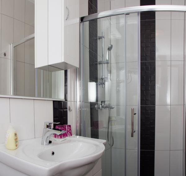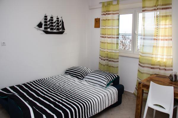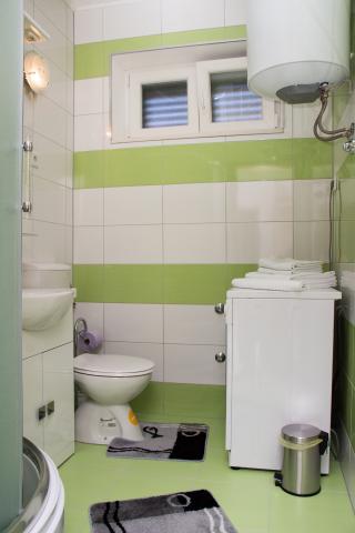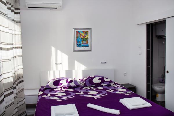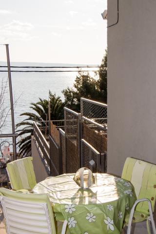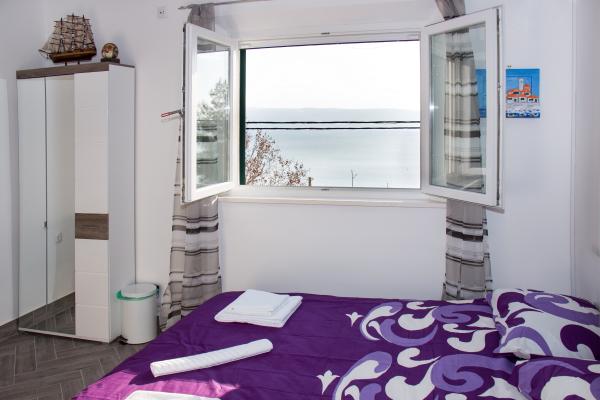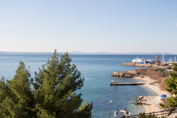 L\appartamento è composto da due camere (ogni camera ha un letto matrimoniale 198x180 e un bagno privato, anche ogni camera è dotata di un proprio aria condizionata, TV e internet wireless) e un soggiorno separato con un divano letto (200x160) con una cucina e privato bagno Tutte le camere e il soggiorno ha un tavolo da pranzo. Anche appartamento ha l\uso di una terrazza esterna che ha una bellissima vista sul mare e sull\isola di Brac. La terrazza è inoltre dotato di tavoli e sedie e ombrellone. Il quartiere è tranquillo e silenzioso, ideale per le famiglie, la spiaggia è dall\altra parte della strada. La stazione degli autobus si trova a 200 metri e gli autobus passano ogni 15 minuti per Spalato e Omis