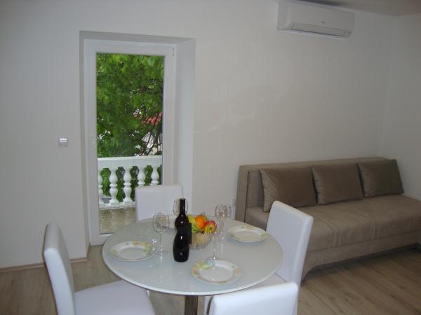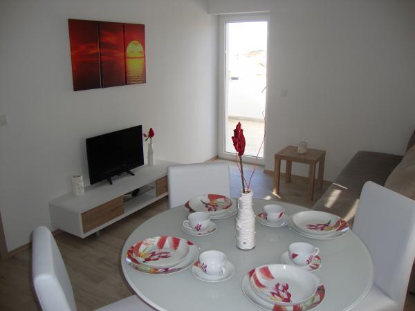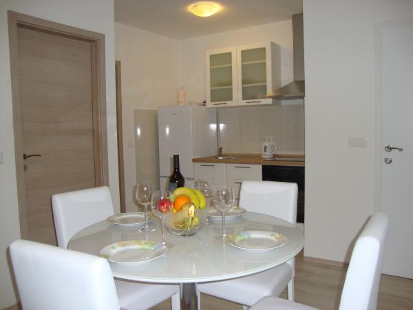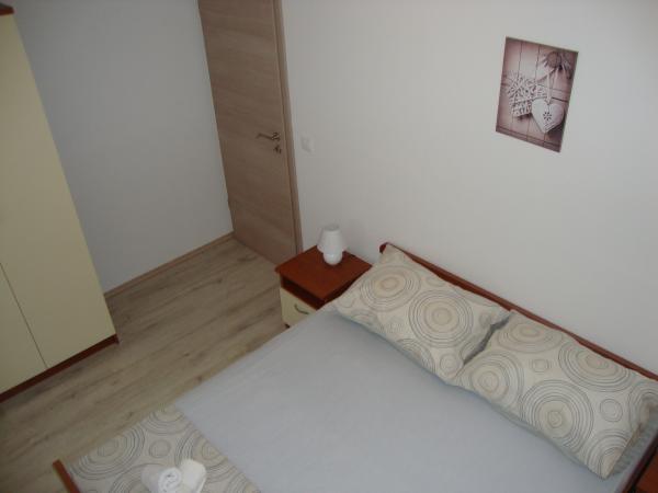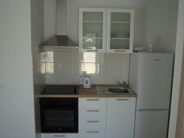 Appartamenti Longin sono al primo piano e sono ideali per due famiglie. Essi sono collegati da una piccola sala che ospita la porta d'ingresso della casa. I proprietari abitano al piano terra, e la terra intorno alla casa cortile, oliveto e camino esterno che è a disposizione degli ospiti. Appartamento al piano ha 31 m2 e una terrazza di 20 m2 e l'appartamento LEONA ha 31 m2 e balcone di 4 m2. Oltre alla casa si trova un mini-market. La spiaggia è 300m e 800m ed entrambi hanno parcheggio gratuito, docce e servizi con cibi e bevande. Isola di Ugljan è collegato alle linee espresse terraferma ogni ora in modo che nessuno di Zara non è lontano. Appartamenti LONGIN sono situati nel villaggio di Kali. Due posti auto gratuiti pubblici più piccole si trovano a 50 metri dalla casa, mentre con la facilità di un posto auto.