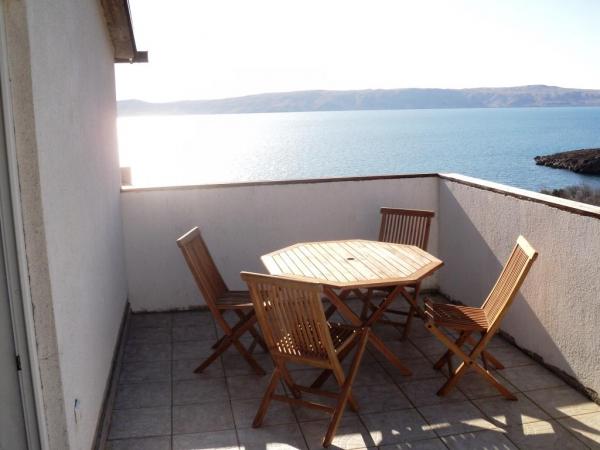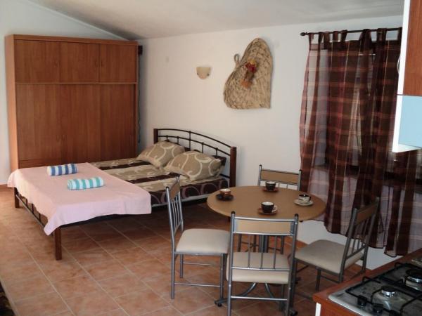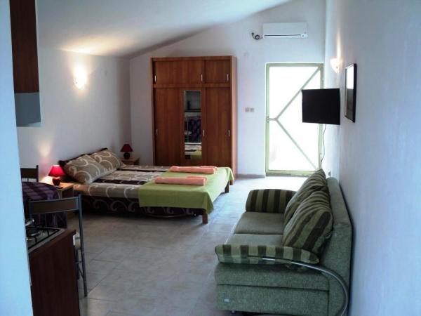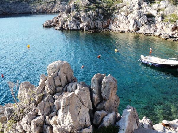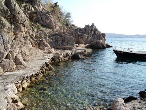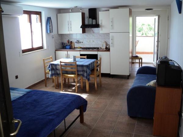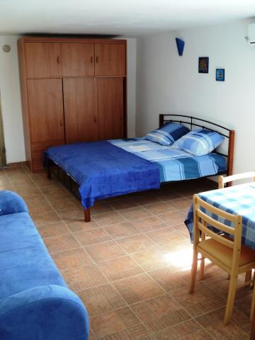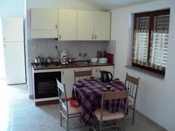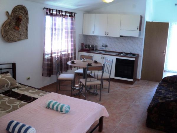 L'edificio è composto da quattro monolocali uguali e modernamente attrezzati, due al primo piano e due al piano terra. Ogni studio ha una superficie di 32 m2, ha un ingresso separato, ampia terrazza di 12 m2 con vista mare, TV satellitare, WIFI e aria condizionata. L'attrezzatura è composta da ampi letti, cucina con forno e fornelli a gas, grande frigorifero con congelatore, bollitore, macchina per il caffè, cappa, ecc. Bagno con wc, lavabo e doccia. La casa dispone di un ampio cortile recintato per il parcheggio gratuito e un barbecue. Accesso ad una piccola spiaggia riparata tramite scale proprie direttamente dal cortile ad una distanza di circa 80 m A 100 m dalla casa c'è un grande ristorante di qualità, pizzeria e gelateria. Con noi hai una vacanza senza rumore, bel mare limpido, vista aperta sul mare e sul Velebit.