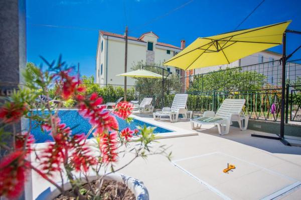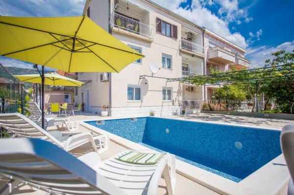 calda raccomandazione, soprattutto se si dispone di un bambino o dei bambini. Il cantiere è un bellissimo paesaggio, piscina perfettamente pulita, gli appartamenti sono dotati di tutto il necessario per rimanere, ha accolto tutti noi ordinato e pulito. I padroni di casa sono calde, cordiale e sempre pronto ad aiutare. Abbiamo alloggiato in un appartamento con vista sul mare, il luogo ideale per il caffè del mattino. Il mare è pulito e le spiagge sono pulite. Ambiente lungo la spiaggia è molto ben arredato. Nelle vicinanze abbiamo trovato un paio di buoni ristoranti (scuola di danza, vacanza) con prezzi molto buoni alimentari e normali, vicino ai negozi, e anche Spalato e Trogir non è lontano. Questa famiglia è un ottimo esempio di come impegnarsi nel settore del turismo. Qualsiasi lode !!! :)