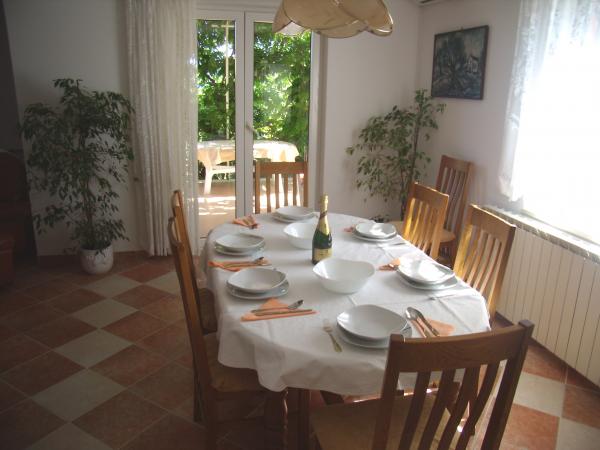 La casa di famiglia in Kastel Stafilic all'hotel Resnik, biliz Trogir si trovano ben attrezzati due spaziosi appartamenti. Appartamento 1 (6 2) di 120 m2 è composto da tre camere da letto, due bagni, un ampio soggiorno Borak, cucina, sala da pranzo, e una grande terrazza con splendida vegetazione nel giardino. Appartamento 2 (4 1) superficiale 70 m2 è composto da due camere da letto, bagno, soggiorno con cucina. L'appartamento dispone di una spaziosa terrazza con splendida vista sulla baia di Kastela. Gli appartamenti sono situati a 80 metri dal mare, e nelle vicinanze c'è un ristorante e campi da tennis .. Gli ospiti possono utilizzare la griglia, un giardino per bambini e posti auto.