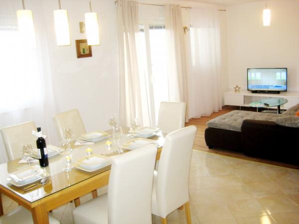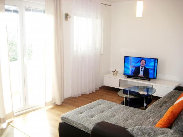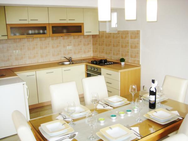 Appartamento Antton è destinato per un totale di 8 persone. e si trova in una casa in una zona tranquilla di Castel Cambi ed è stato appena ristrutturato e arredato in modo confortevole. Si compone di un ampio soggiorno / cucina e sala da pranzo, 3 camere da letto e 2 bagni. Ogni finestra nel soggiorno e la sala da pranzo offre una vista mozzafiato sul mare e gli ulivi che si trovano nel giardino. Si può godere di un barbecue in giardino, che è circondata da alberi di ulivo o sulla terrazza con una vista mozzafiato. L'appartamento dispone di tre camere da letto, una camera con due letti singoli e le altre 2 camere da letto ciascuna un letto matrimoniale. I due bagni sono completamente attrezzate, tra cui la lavatrice. Un bagno ha una doccia e il secondo bagno ha una vasca. L'appartamento offre tutti i servizi che sono necessari durante il soggiorno (la connessione Wi-Fi gratuita, aria condizionata, TV via cavo, lavastoviglie, lavatrice, asciugacapelli, ferro e asse da stiro, asciugamani, biancheria da letto.). . Due parcheggi privati sono disponibili davanti alla casa.