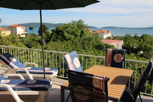 Appartamento con due camere da letto confortevole e completamente arredati con vista sul mare. Situato in una zona tranquilla di Kastel Kambelovac, immersa nel verde delle piante mediterranee fichi, ciliegie, mandarini, viti, ulivi. Appartamento (85 m) occupa il primo piano della casa di famiglia, situata su un terreno di 4000m. Dispone di un ampio orientato a sud terrazza, (30m) con una splendida e rilassante vista sulla baia. E 'solo a pochi minuti a piedi dal mare, spiaggia, parco, passeggiata, ristoranti, negozi. Trascorrete le vostre vacanze in un castello, una città con sette villaggi ai piedi delle piste di Kozjak. Senti la vita della Dalmazia. Svegliatevi con l'odore del mare e il cinguettio degli uccelli. Andare in giro la sua fortificazioni, castelli, chiese, sagrato, camminare le sue strade. Gustare i autentica cucina locale, ottimi ristoranti a prezzi accessibili. Visita Spalato e Trogir si trovano a soli 10 km, crediamo che vi permetterà di trascorrere una vacanza indimenticabile.