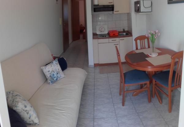 moderno monolocale al piano terra di un condominio in Klek, Dubrovnik-Neretva County completamente attrezzata e. Appartamento di 29m2 ha una camera con un letto matrimoniale, un soggiorno con divano letto, cucina completa, bagno con doccia, aria condizionata, connessione Wi-Fi, lavatrice, frigorifero, forno a microonde, biancheria da letto.