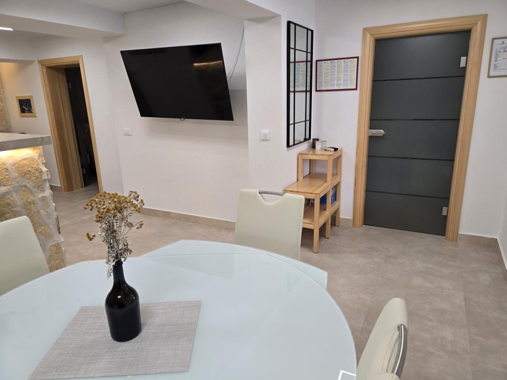 Scopri di piu Unità d'alloggioPer la prenotazione, è richiesto un acconto pari a tre notti sul numero totale di notti, da versare sul conto corrente in valuta estera che vi invieremo dopo la vostra richiesta e l'accettazione della prenotazione. Il pagamento avviene esclusivamente in contanti. L'orario di arrivo è flessibile, ovvero dipende dal fatto che l'unità abitativa sia già libera o che gli ospiti precedenti debbano partire e in tal caso dobbiate attendere 2 ore per la pulizia, ma potete lasciare i bagagli presso di noi se arrivate prima. È consuetudine lasciare l'unità abitativa entro le 11:00 e i nuovi ospiti possono entrare alle 14:00. L'acconto non verrà restituito in caso di cancellazione della prenotazione. Eventuali danni causati dall'ospite agli appartamenti/camere verranno addebitati. È obbligatorio rispettare l'ordine e la quiete, come evidenziato in tutte le aree. Le prenotazioni vengono effettuate principalmente tramite WhatsApp al numero +385992064739 NIKO MAROVIC e via e-mail all'indirizzo marovicp@yahoo.com Pero Marovic +38598224974