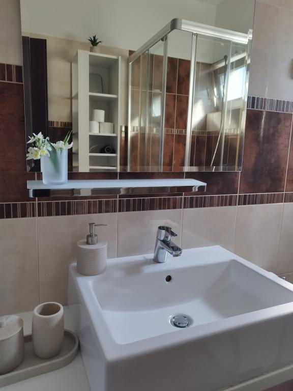 Abbiamo solo parole di elogio per tutto: dal primo, cordialissimo colloquio telefonico con la Sig.ra Lela, in cui ci ha dato volentieri tutte le informazioni, sia cosa cercavamo che cosa no, ma pensava che potessimo essere interessato, attraverso le foto aggiuntive dell'appartamento che abbiamo ricevuto inviate su suo suggerimento, ad una splendida accoglienza attraverso un'accoglienza personale e arrivando davanti a noi (perché eravamo un po' perse) oltre che attraverso un vassoio di benvenuto con frutta , prosciutto, formaggio e frittelle. Durante il nostro soggiorno, lei era sempre lì per noi, in un modo discreto e caloroso. Significava molto per noi sapere che stava nella stessa casa in cui stavamo noi, nel caso avessimo bisogno di qualcosa con urgenza. L'appartamento in sé è impeccabilmente pulito e ben arredato, con amore e molta attenzione ai dettagli, in modo che abbia tutto ciò di cui hai bisogno e ci siamo sentiti a casa. Il posto in sé è perfetto per godersi le bellissime spiaggette vicine (anche se avevamo le "nostre" in cui andavamo sempre), senza folla, ma vicino alle città gemma - Zara e Nin. Alla fine del nostro soggiorno (che è arrivato troppo in fretta), la signora Lela ci ha preparato una cena di addio: è stato un incontro meraviglioso! Inutile dire che vogliamo tornare! Preferibilmente quest'anno.