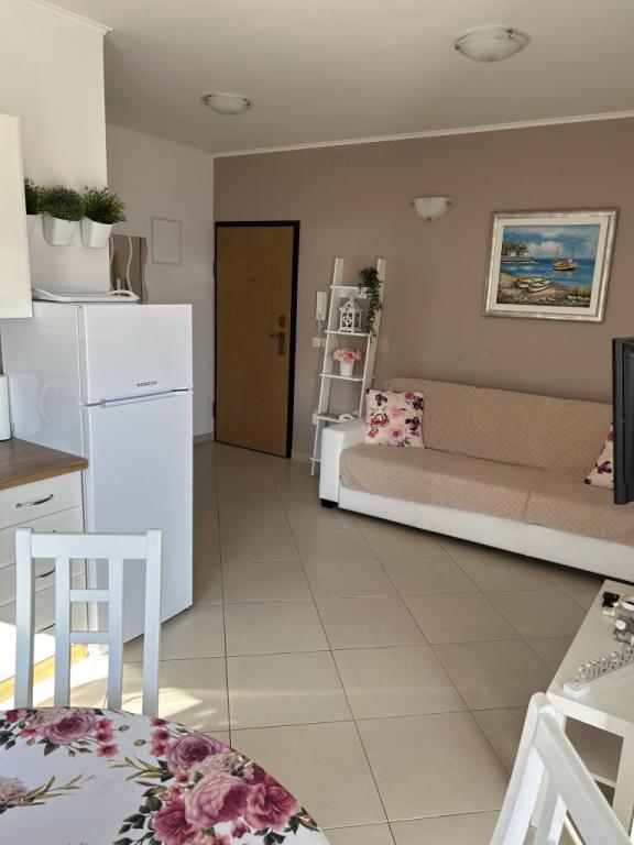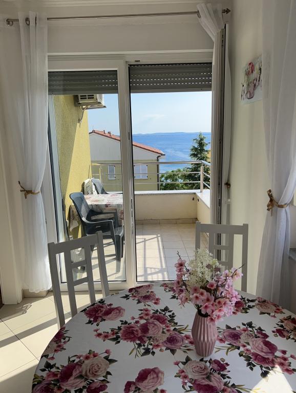 Moderno appartamento in un tranquillo condominio residenziale al terzo piano con splendida vista mare. L'appartamento dispone di una camera da letto con letto matrimoniale, un divano letto estraibile, una cucina completamente attrezzata e una terrazza con splendida vista mare. L'appartamento dista 50 metri dal mare e dalla spiaggia.