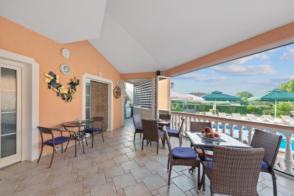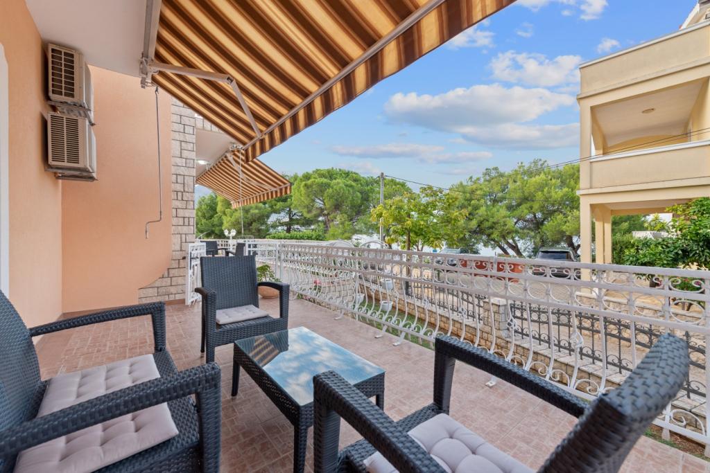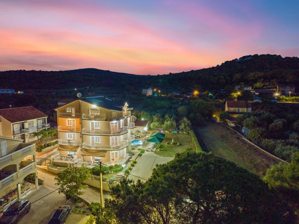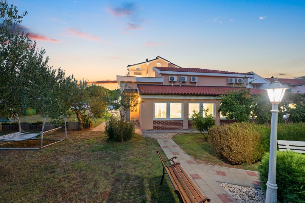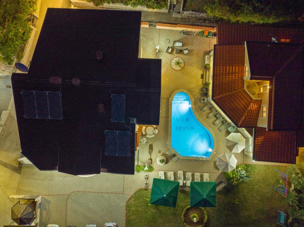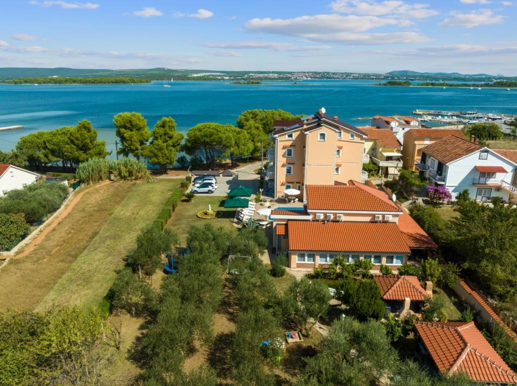 Crown Villa è un lussuoso albergo a 4 stelle che può ospitare comodamente 30 persone. Villa è il primo di una serie, situato in una splendida posizione proprio sulla spiaggia di sabbia con vista sul canale di Pasman. Giardino con una ricca vegetazione mediterranea che circonda la villa e la rende particolarmente attraente. Nel giardino c'è una piscina riscaldata con illuminazione. La villa dispone di 7 suite spaziose, ognuna decorata in modo speciale. Ogni appartamento dispone di balcone o terrazza privata con vista sulle ville mare, spiaggia e giardino.