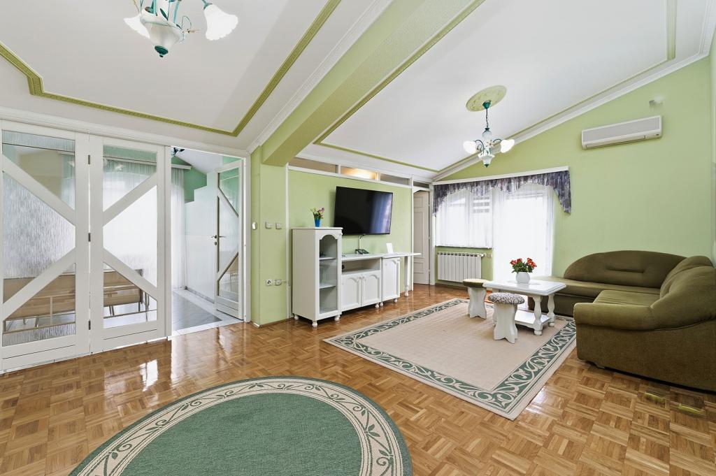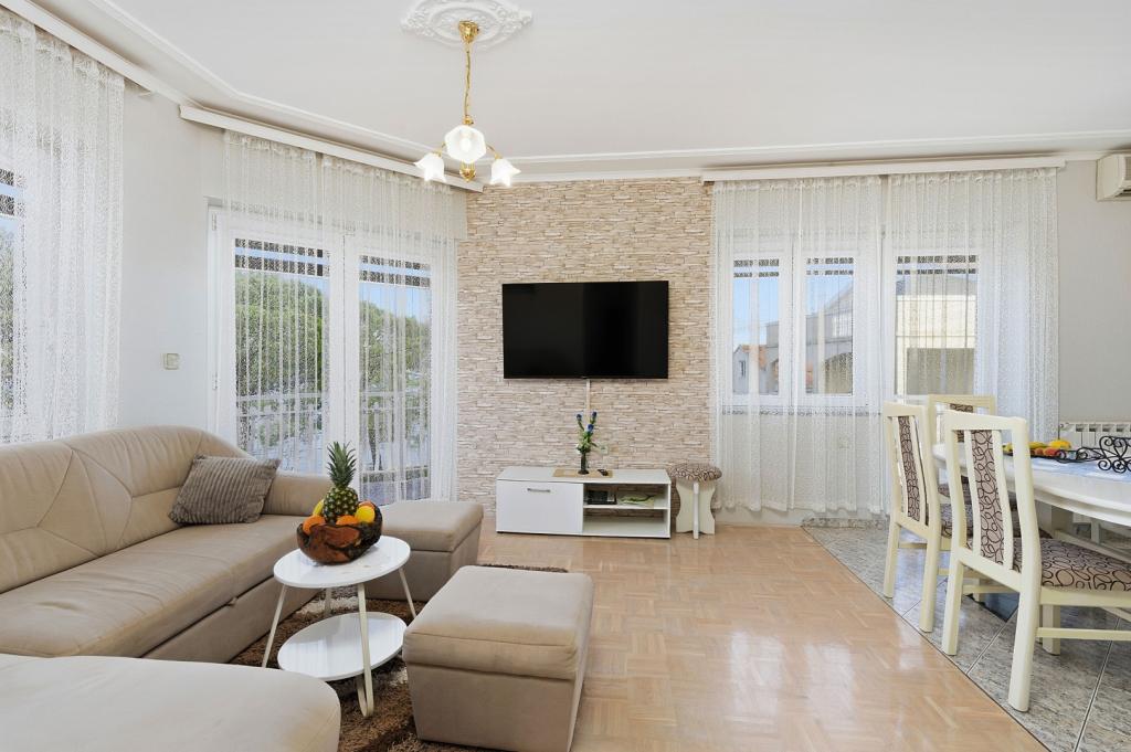 La tassa di soggiorno non è inclusa nel prezzo.Offriamo anche la possibilità di mangiare su appuntamento nel nostro ristorante solo per gli ospiti. In collaborazione con le agenzie locali e funzionari del turismo sono in grado di organizzare varie escursioni, noleggio barca e barca, noleggio bici, auto, ecc Crown Villa è particolarmente adatto per coloro che vogliono la pace perfetta e la privacy, ma vogliono anche andare in tour dell'isola, dell'arcipelago, terra, o dei tanti parchi nazionali o parchi sul totale dei ricavi (PN Kornati, PN Krka, PN Paklenica, PP Vrana , Telascica).