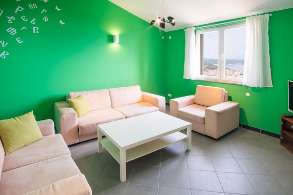 L'appartamento è situato al 1 ° piano, che si trova in una posizione tranquilla attraente, ha una terrazza coperta con una bellissima vista sul mare e la città vecchia. A soli 10 min. raggiungere a piedi il centro e dalle spiagge nelle vicinanze per tutti i gusti. Saremo lieti di aiutarvi consigliare dove andare durante il viaggio, cena o uscire. Saremo lieti di darvi il benvenuto!