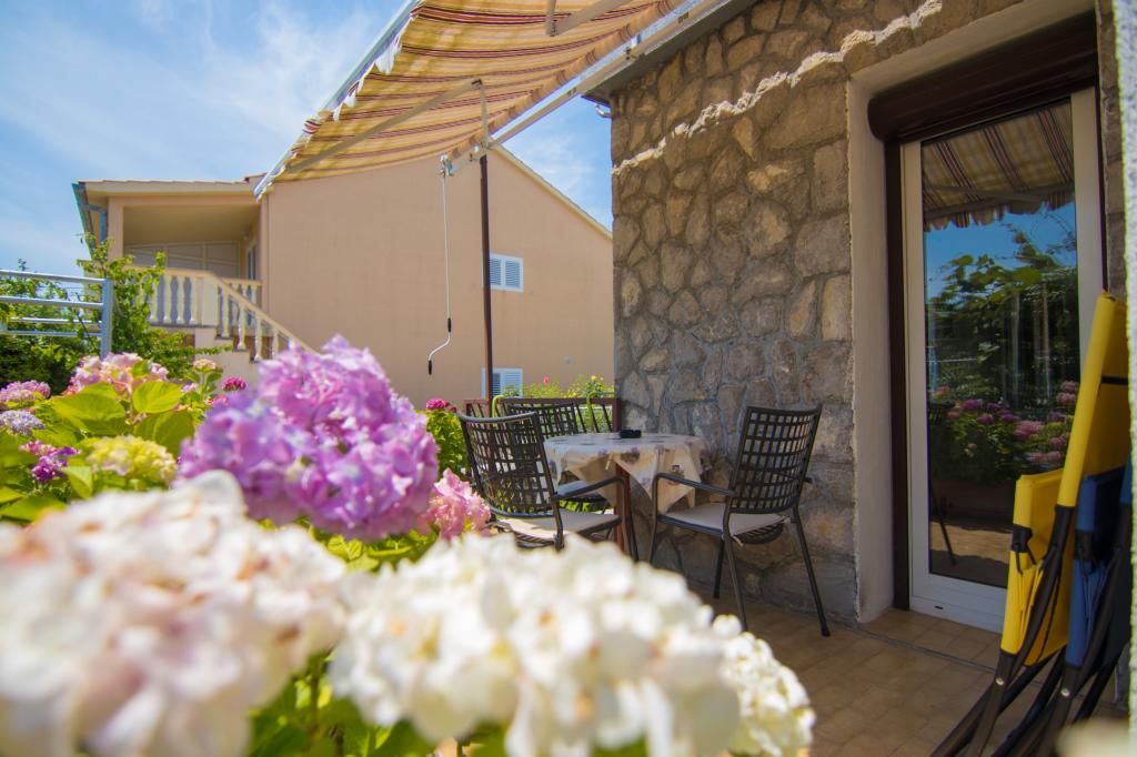 La nostra casa con appartamenti si trova in una zona tranquilla di Krk. Gli appartamenti sono situati al piano terra, uno accanto all'altro. Sono modernamente attrezzate. Ognuno ha il proprio terrazzo, circondato da fiori di ortensie. , con vista sul giardino. Il parcheggio è in cortile, coperto con tenda da sole. La spiaggia PLAV è a 2-3 minuti a piedi dalla nostra casa. I proprietari abitano al primo piano della casa.