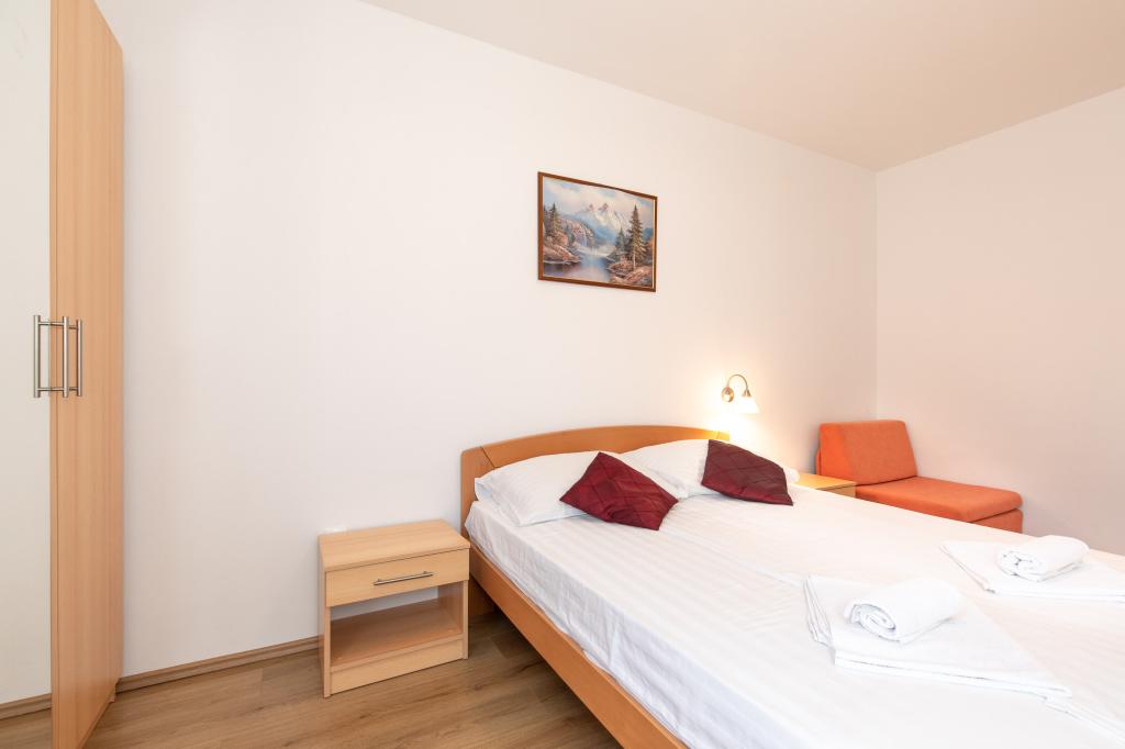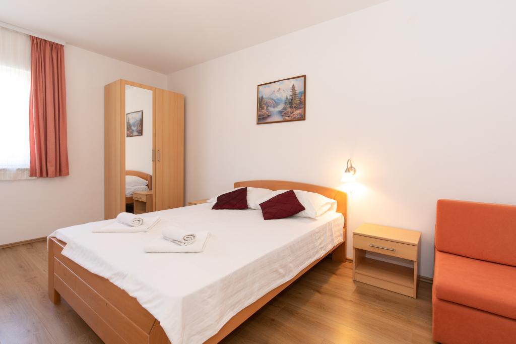 Scopri di piu Unità d'alloggio- Check in: dalle ore 15:00 del giorno di arrivo / Check out: entro le ore 10:00 del giorno di partenza - La conferma della prenotazione è valida dopo il pagamento del 30% dell'importo totale della prenotazione sul conto specificato nell'offerta, ed è necessario inviare una copia del pagamento dopo di che riceverete la conferma della prenotazione. - Il resto dell'importo viene pagato in contanti il giorno di arrivo o sul conto bancario dove è stato versato l'acconto entro e non oltre 7 giorni prima dell'arrivo. Costi aggiuntivi: - Registrazione: 7 euro a persona una volta - Pulizia finale per appartamento: 20 euro