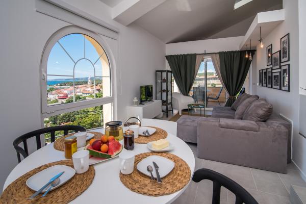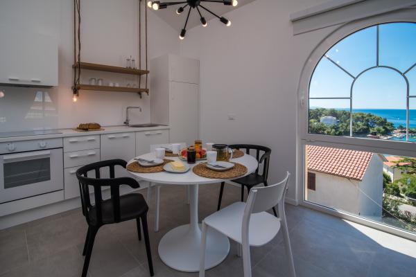 Questo appartamento si trova a 2 minuti a piedi dalla spiaggia e dal centro storico. Fornisce una delle viste più belle della città vecchia. Dispone di parcheggio gratuito. Esso è dotato di una TV a schermo piatto, aria condizionata e WiFi gratuito. La cucina dispone di lavastoviglie, caffè e acqua calda, microonde, forno, tranne che per l'appartamento sopra è dotato di una lavatrice e un bagno e un piccolo bagno.