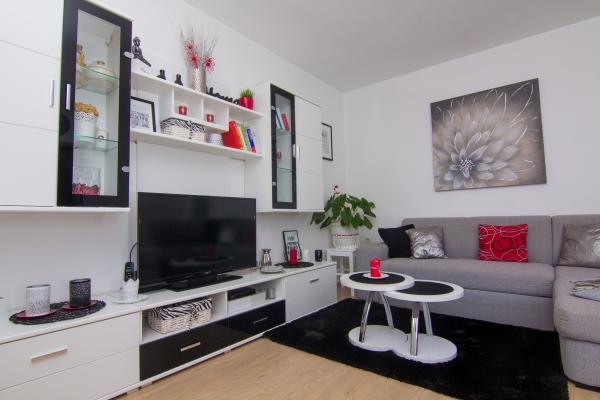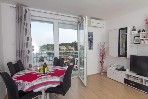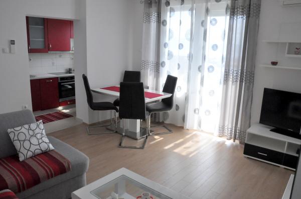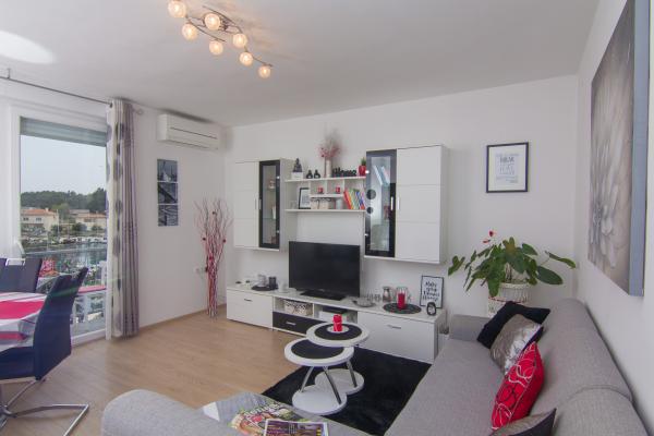 Appartamento di nuovo e moderno nel centro della città, al secondo piano del palazzo, a soli 20 metri dal mare. Il balcone offre una splendida vista sulla Cattedrale dell'Assunzione della Beata Vergine Maria, lungomare e porto turistico-port. La connessione internet e il parcheggio. Ristoranti, negozi, mercato del pesce, mercato, banca, farmacia e stazione di servizio si trovano a soli 100 metri di distanza e la spiaggia a 200 metri.