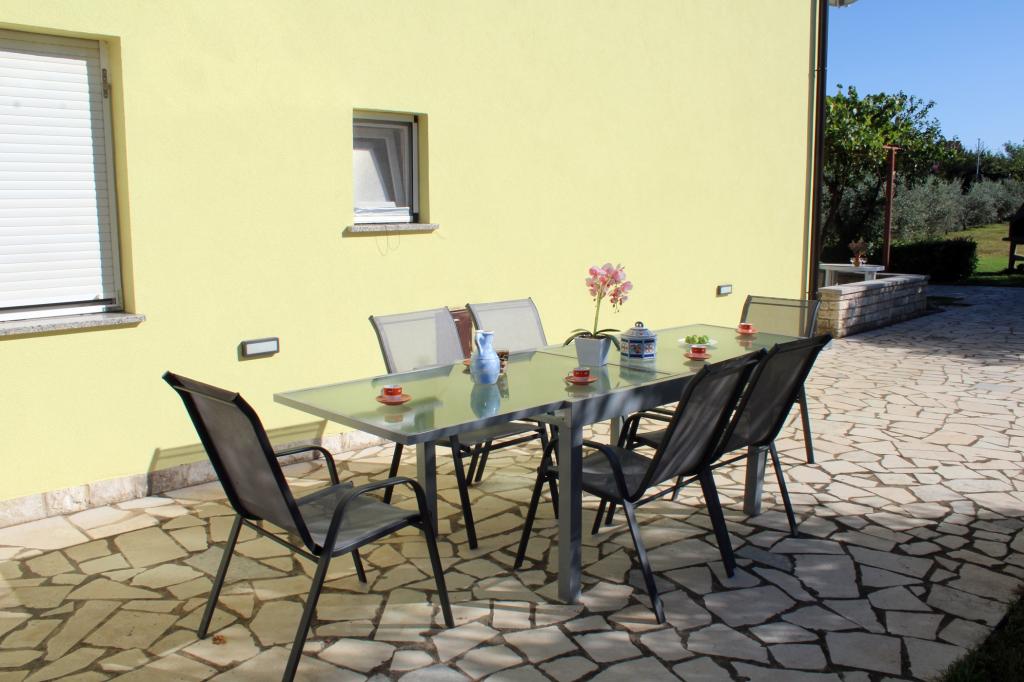 Casa spaziosa e soleggiata si trova a Lisignano, a circa 800 m dal mare, a 2 km da Medulin e 12 km da Pola. Si compone di due appartamenti, un appartamento per otto persone e un appartamento per cinque persone. Gli appartamenti per otto persone si trovano al piano terra. Ha un proprio ingresso. Sono composti da quattro camere da letto, cucina completamente attrezzata con sala da pranzo, due bagni, terrazzo. Appartamento per cinque persone si trova al primo piano. Si compone di due camere matrimoniali, una camera singola, cucina, soggiorno, bagno, soprattutto un wc, terrazzo. L'appartamento ha una bellissima vista mare. La casa dispone di un enorme giardino e di tanto spazio per il parcheggio e il gioco dei bambini, oltre a un barbecue all'aperto. Si trova in un quartiere tranquillo e offre relax e massimo comfort. Nelle immediate vicinanze si trovano un negozio di alimentari, farmacia, ristoranti, informazioni turistiche ...