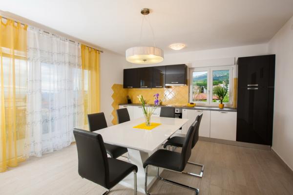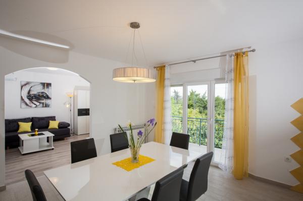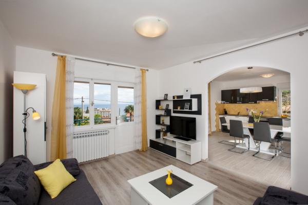 Confortevole, moderno appartamento in una zona tranquilla di Lovran, circondato da un ampio giardino, ideale per una vacanza in famiglia. Si compone di tre camere matrimoniali e un ampio soggiorno, cucina e due bagni. Dispone di un ampio balcone con vista sul mare. Rinnovato del 2014. anno. La struttura si trova a 5 minuti a piedi dalla spiaggia più vicina, ea 10 minuti dal centro.