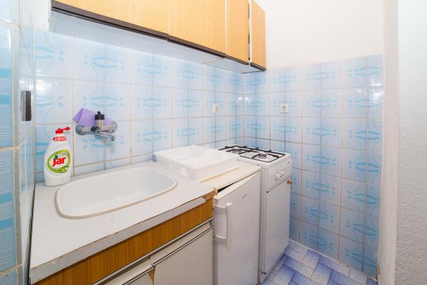 La casa si trova sul lato ovest dell'ingresso a Makarska. È di ca. 300 metri. Dalla casa al mare c'è una pineta dove ci sono diversi campi da tennis. La casa ha una grande terrazza con sedie a sdraio e vista sul mare, sulle isole e sulla montagna Biokovo. C'è anche un barbecue.