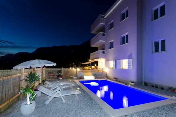 Appartamento sulla parte orientale della città di Makarska, situato in casa di nuova costruzione, gli altri appartamenti sono chiusi, la piscina è ad uso degli ospiti di questo singolo appartamento, parcheggio gratuito, tutte le camere sono dotate di aria condizionata, grilgla elettrica. La casa si trova 10 min. a piedi al centro della città, la stessa distanza dalla spiaggia (la città).