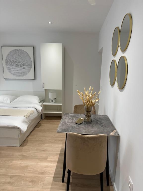 Gli appartamenti Olga 1, completamente ristrutturati, si trovano a Makarska, nella zona "Plaža", a soli 50 metri dal mare e dalla spiaggia. Offriamo 3 appartamenti situati al 1° piano della casa. Offriamo anche un appartamento per 4 persone situato al piano terra. Tutti gli appartamenti dispongono di aria condizionata, bagno privato, cucina attrezzata, SMART-TV/SAT, WiFi e un balcone dove potrete trascorrere il vostro tempo libero. Il parcheggio privato si trova nel cortile di fronte alla casa. Il supermercato più vicino dista 100 metri, mentre ristoranti e bar si trovano a 50 metri di distanza e si trovano sulla spiaggia. Il centro città è raggiungibile in 5 minuti a piedi. Gli appartamenti sono situati in un ambiente tranquillo e silenzioso.