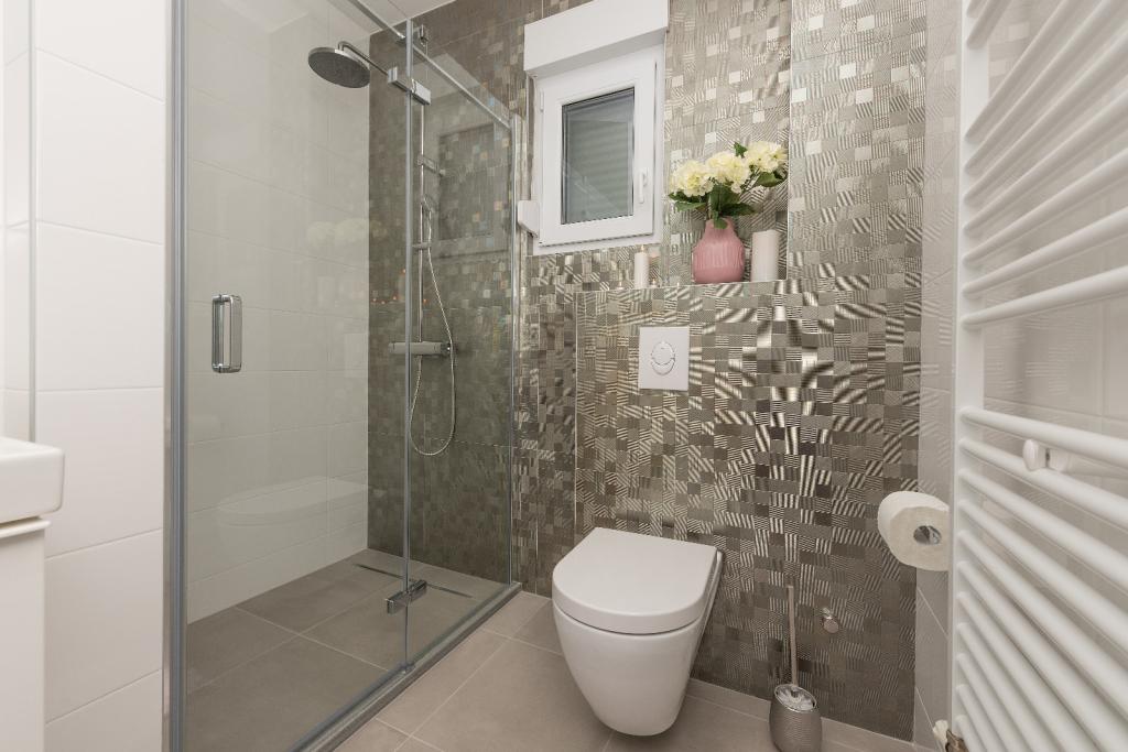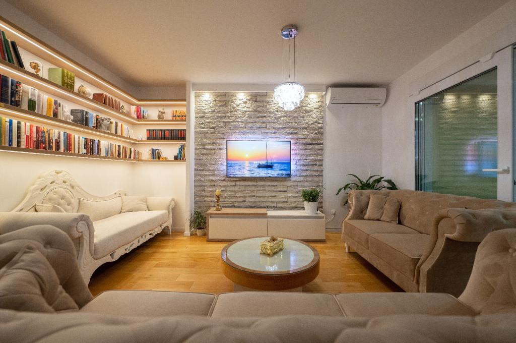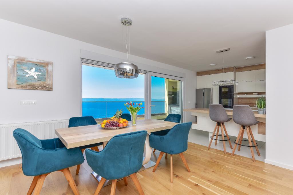 Gli attici Jure e Nikola a Makarska sono lussuosi e spaziosi appartamenti di 135 m², ideali per un soggiorno confortevole e rilassante. Ogni appartamento è composto da tre camere da letto elegantemente arredate, due bagni moderni, un garage e un'ampia terrazza con una vista spettacolare sul mare e sulla città, perfetta per momenti di svago e relax. Situati in una zona tranquilla, distano 2 km dal centro città e 1 km dal mare, offrendo una combinazione ideale di privacy e vicinanza a tutti i servizi.
