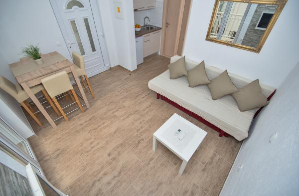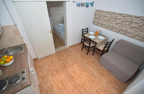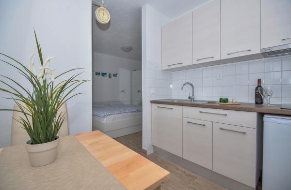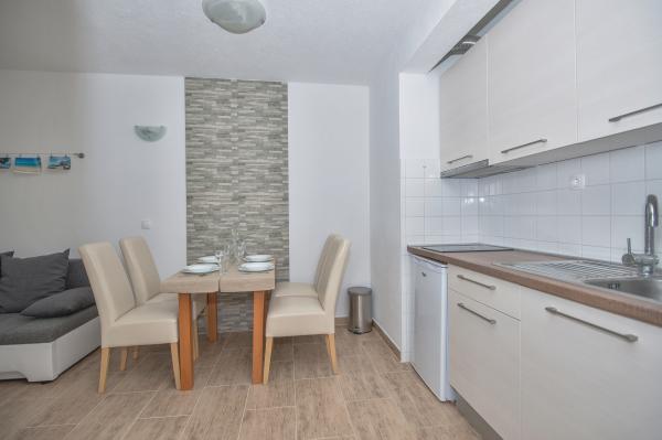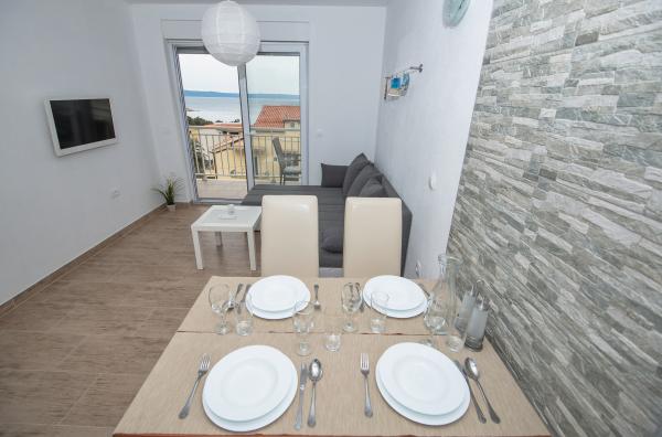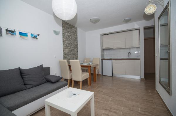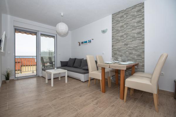 Moderni appartamenti con splendida vista sul mare situato in una zona tranquilla del paese e fornire un completo riposo e relax. Gli appartamenti dispongono di un cortile con parcheggio e sono ideali per tutte le persone (2 +2) (adulti, famiglie con bambini, giovani). Spiaggia Decorato è inferiore a 200 metri, mentre a negozio di alimentari arriva in 1 minuto.