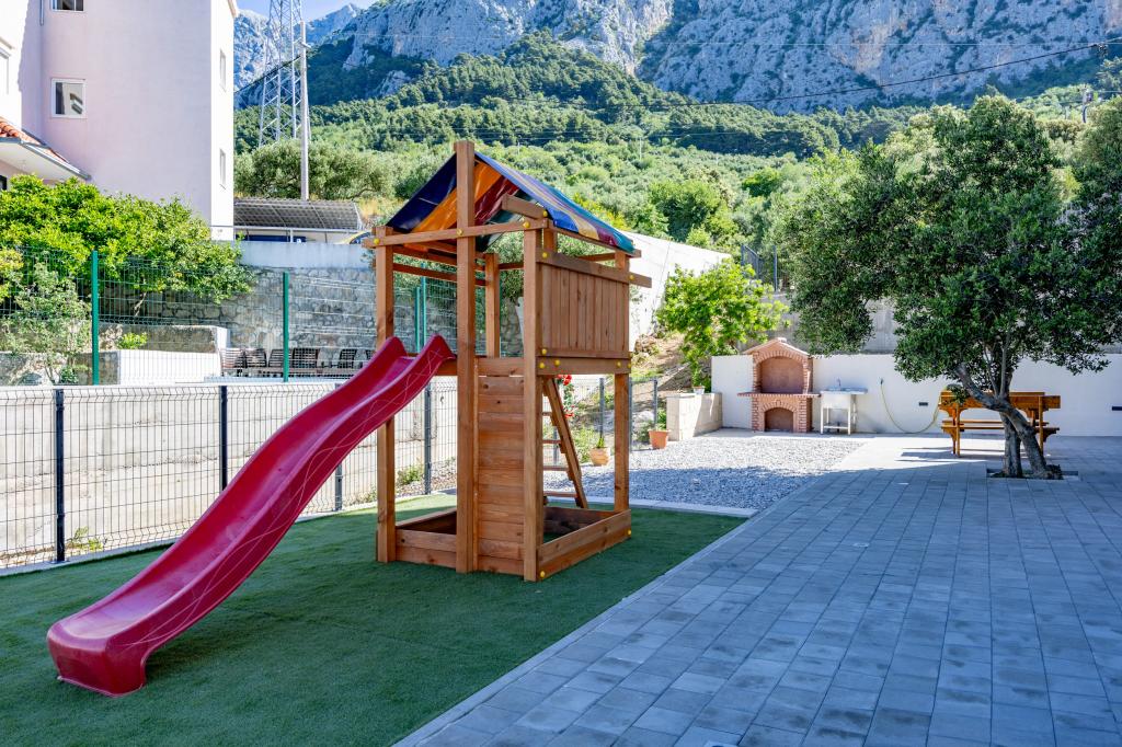 Gli appartamenti Villa Frane si trovano a Makarska, in un quartiere tranquillo e ben curato, situato su una dolce collina sopra la città. Si trovano a soli 10 minuti a piedi dal pittoresco centro città, il che rende la posizione perfettamente bilanciata: abbastanza tranquilla per rilassarsi, ma vicina a tutti i servizi che Makarska ha da offrire. Benvenuti nei moderni appartamenti con due camere da letto completamente attrezzati, ideali per famiglie, coppie o amici che desiderano una sistemazione confortevole in una delle destinazioni più belle dell'Adriatico. La struttura si trova a circa 1,5 km sopra il centro, offrendo agli ospiti tranquillità, privacy e una splendida vista sui dintorni. La casa dispone di un totale di 6 appartamenti, ognuno con due camere da letto, balcone privato e aria condizionata. Gli ospiti hanno inoltre accesso a servizi aggiuntivi che rendono il loro soggiorno ancora più piacevole: ascensore nell'edificio, parcheggio esterno per ogni appartamento, parco giochi per bambini - ideale per i più piccoli, barbecue in comune per socializzare e godersi l'aria aperta. La scelta perfetta per la vostra vacanza a Makarska.