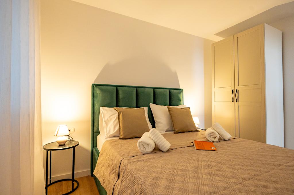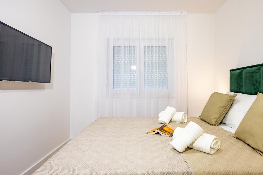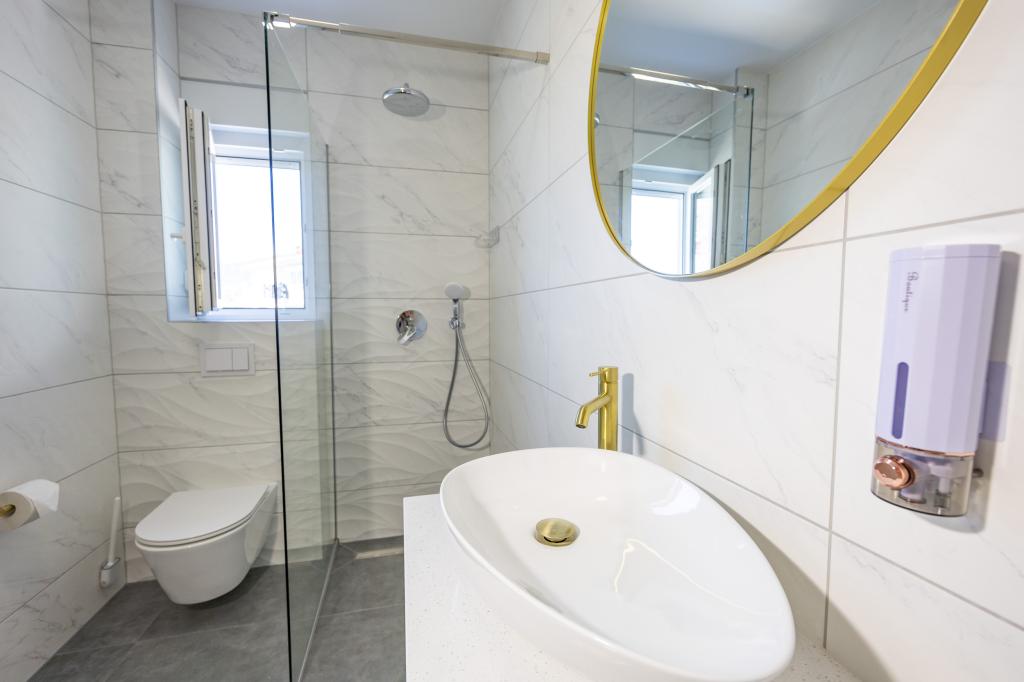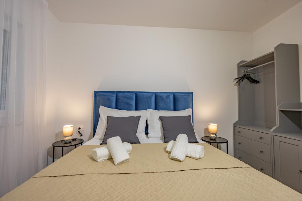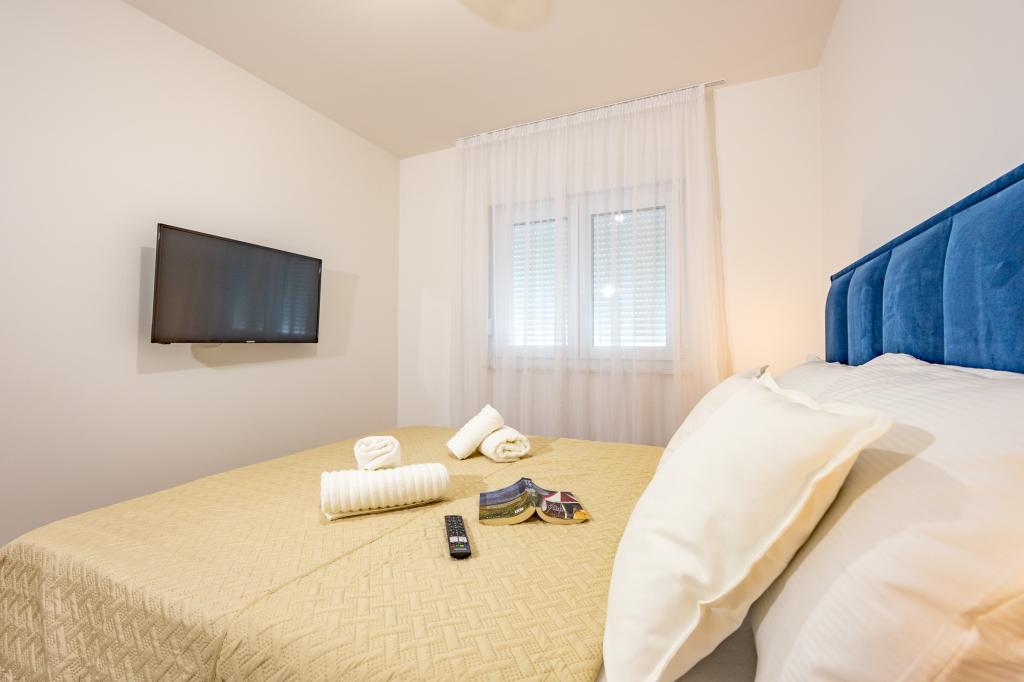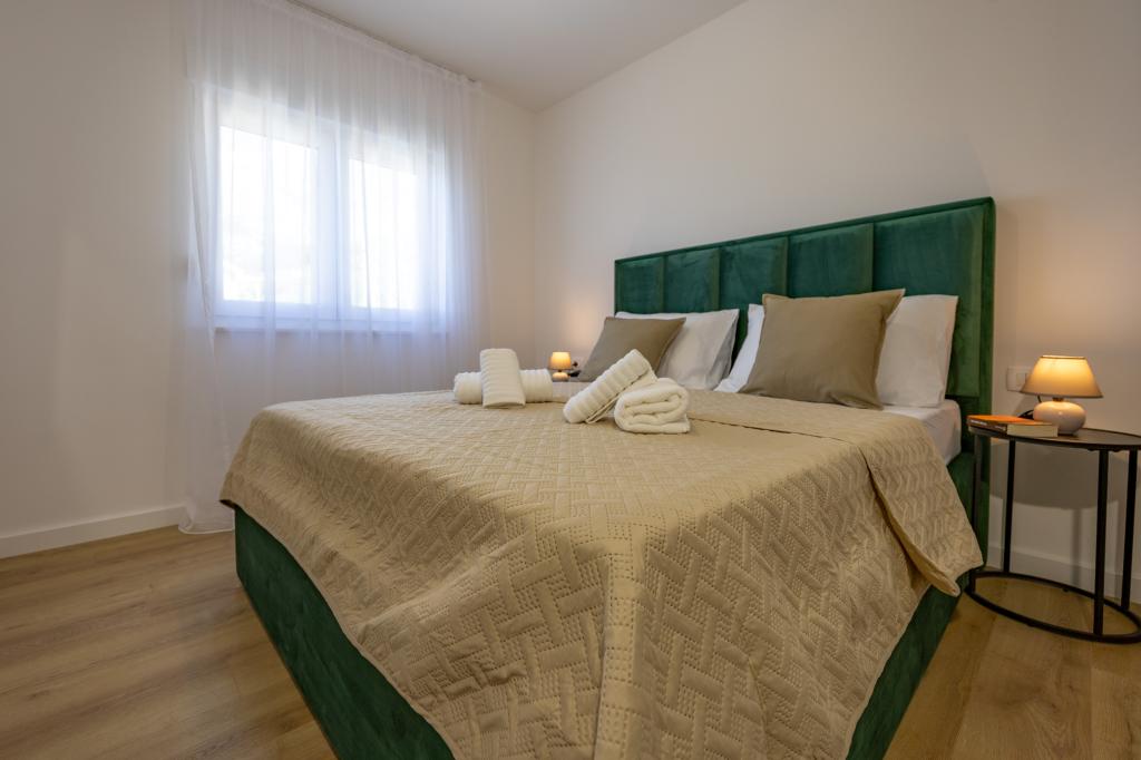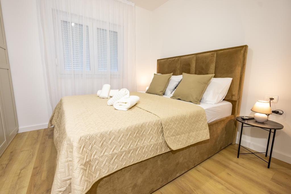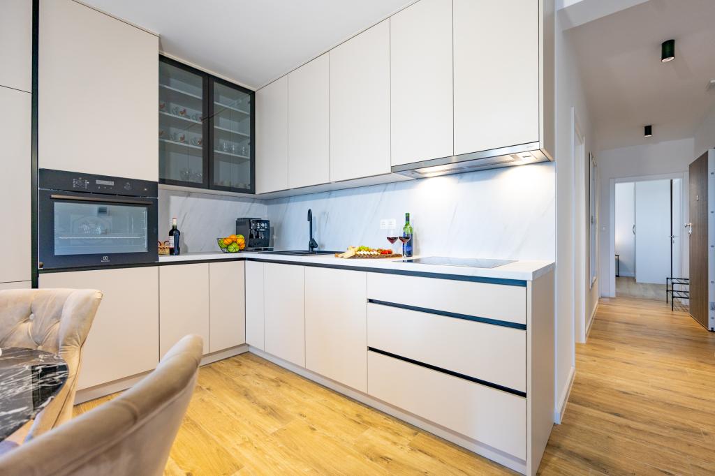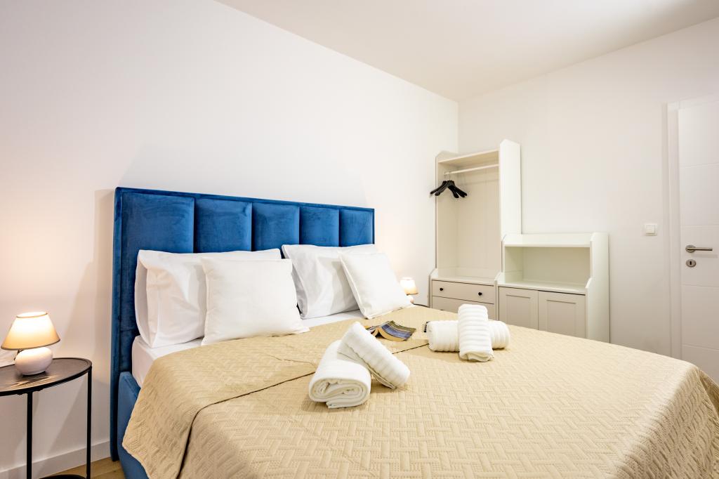 Ogni appartamento è caratterizzato da un design moderno e da interni recentemente rinnovati. Nell'ampio soggiorno, arredato con mobili di buon gusto e dettagli contemporanei, vi sentirete come a casa. Il concetto di open space collega naturalmente il soggiorno con una cucina completamente attrezzata, dove vi attendono eleganti piani di lavoro, elettrodomestici di qualità e tutto lo spazio necessario per preparare i vostri piatti preferiti. La zona giorno si apre su un piacevole balcone, il luogo ideale per un caffè mattutino o per rilassarsi la sera con un bicchiere di vino e un indimenticabile tramonto sull'Adriatico. Ogni appartamento dispone di due comode camere da letto con letti matrimoniali, dotate di morbida biancheria e ampio spazio per riporre gli oggetti, un bagno moderno e un WC aggiuntivo. Gli appartamenti sono climatizzati e completamente attrezzati: TV/SAT, internet, lavatrice, lavastoviglie, macchina per il caffè e tutto il necessario per un soggiorno piacevole e spensierato.