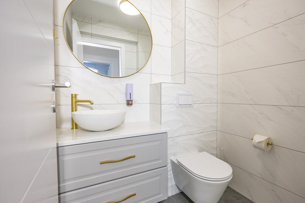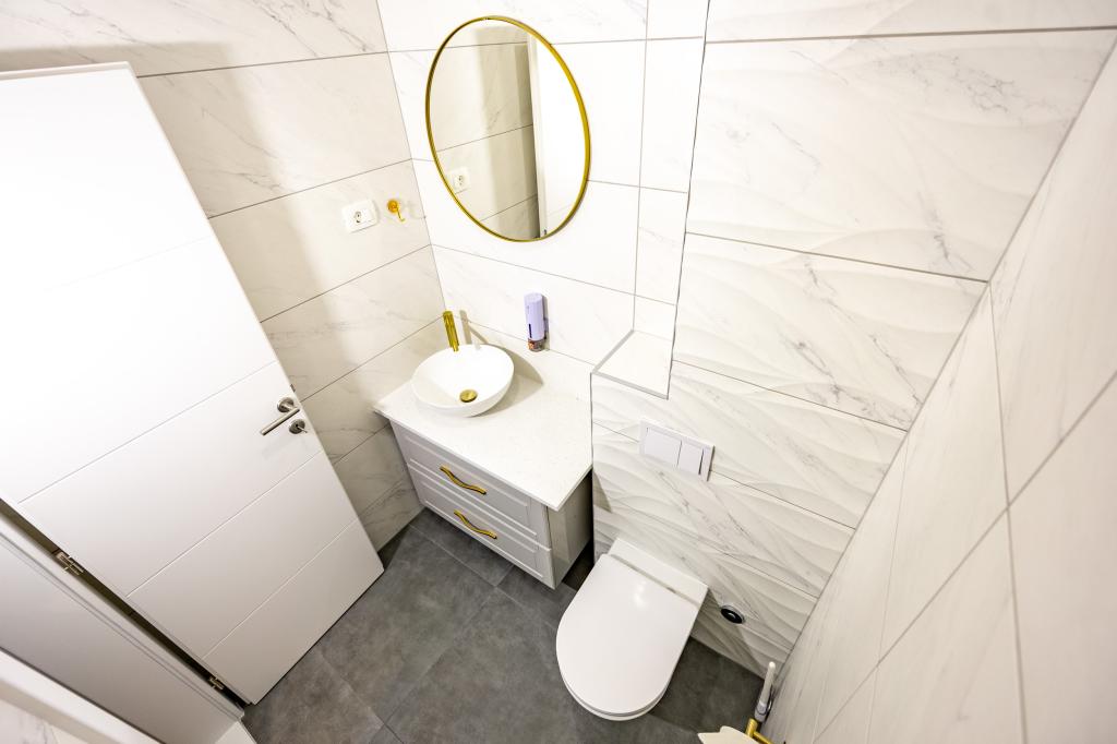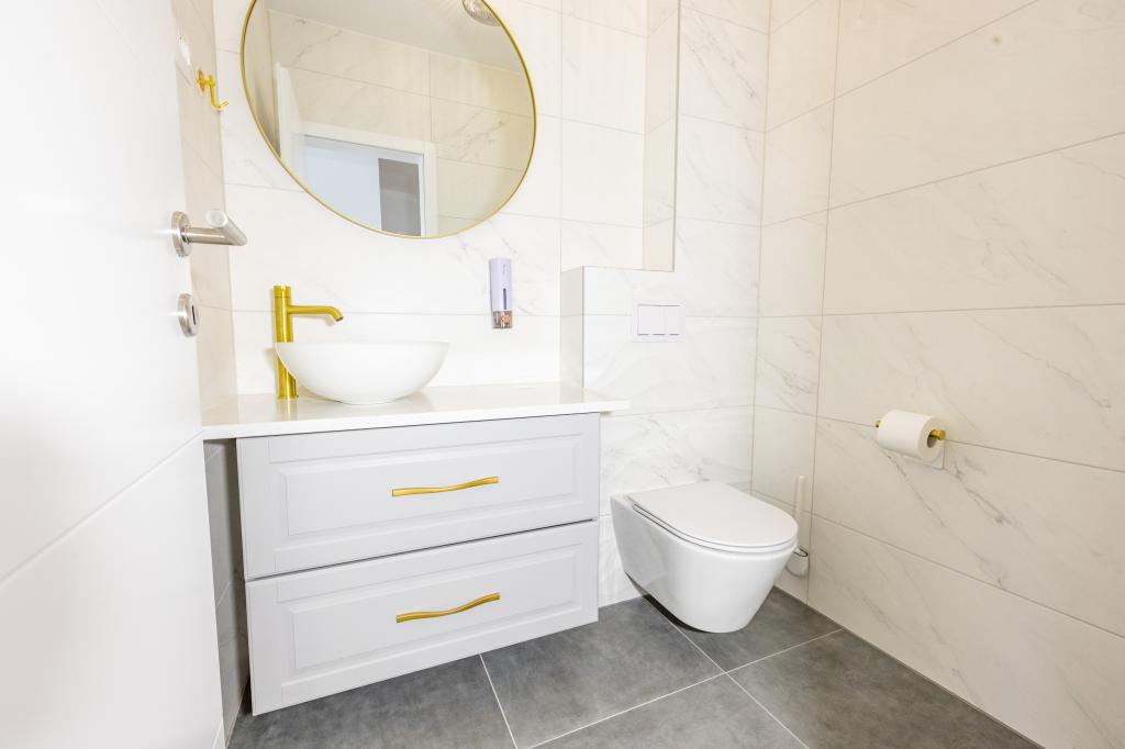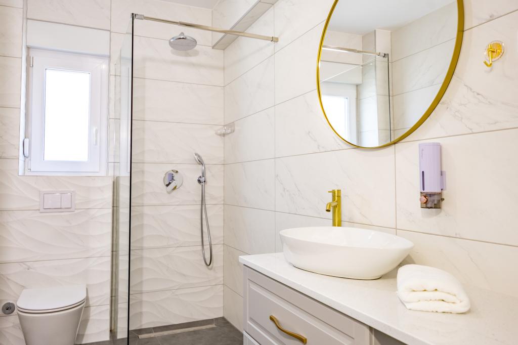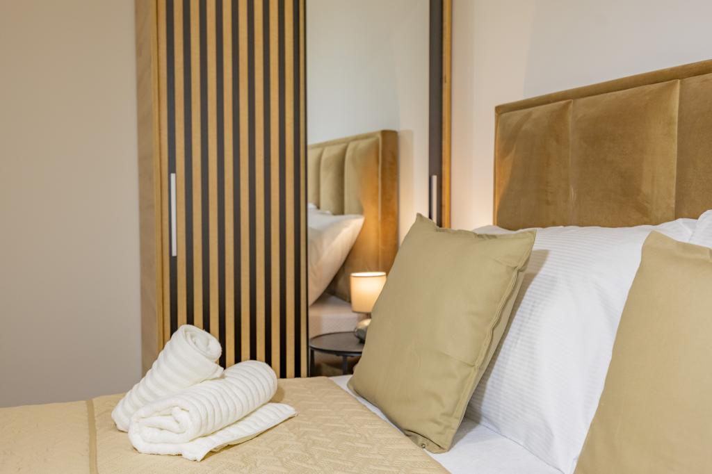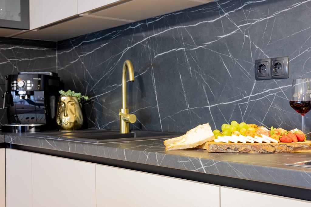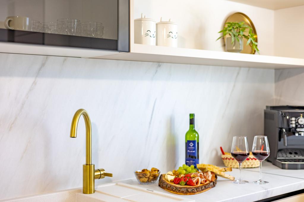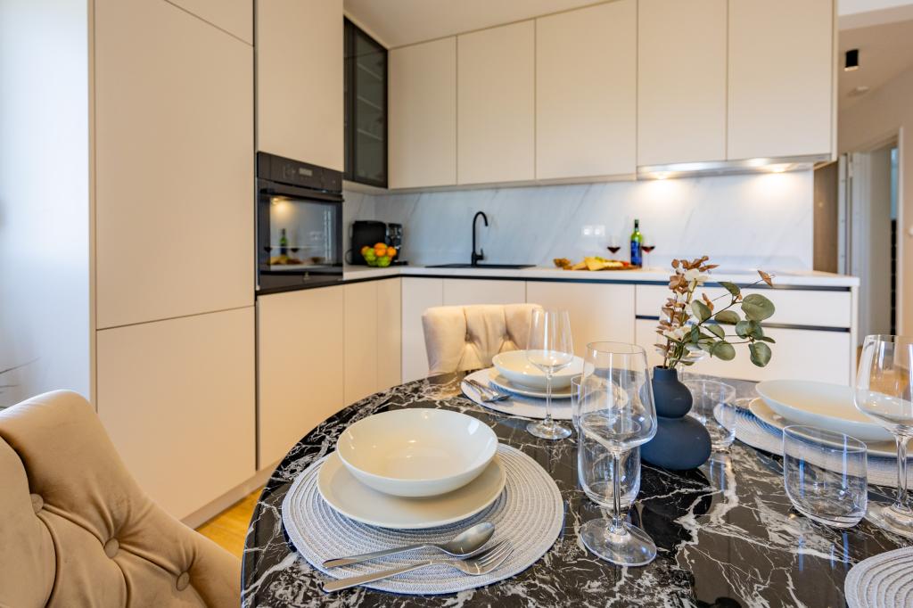 Ogni appartamento è caratterizzato da un design moderno e da interni recentemente rinnovati. Nell'ampio soggiorno, arredato con mobili di buon gusto e dettagli contemporanei, vi sentirete come a casa. Il concetto di open space collega naturalmente il soggiorno con una cucina completamente attrezzata, dove vi attendono eleganti piani di lavoro, elettrodomestici di qualità e tutto lo spazio necessario per preparare i vostri piatti preferiti. La zona giorno si apre su un piacevole balcone, il luogo ideale per un caffè mattutino o per rilassarsi la sera con un bicchiere di vino e un indimenticabile tramonto sull'Adriatico. Ogni appartamento dispone di due comode camere da letto con letti matrimoniali, dotate di morbida biancheria e ampio spazio per riporre gli oggetti, un bagno moderno e un WC aggiuntivo. Gli appartamenti sono climatizzati e completamente attrezzati: TV/SAT, internet, lavatrice, lavastoviglie, macchina per il caffè e tutto il necessario per un soggiorno piacevole e spensierato.