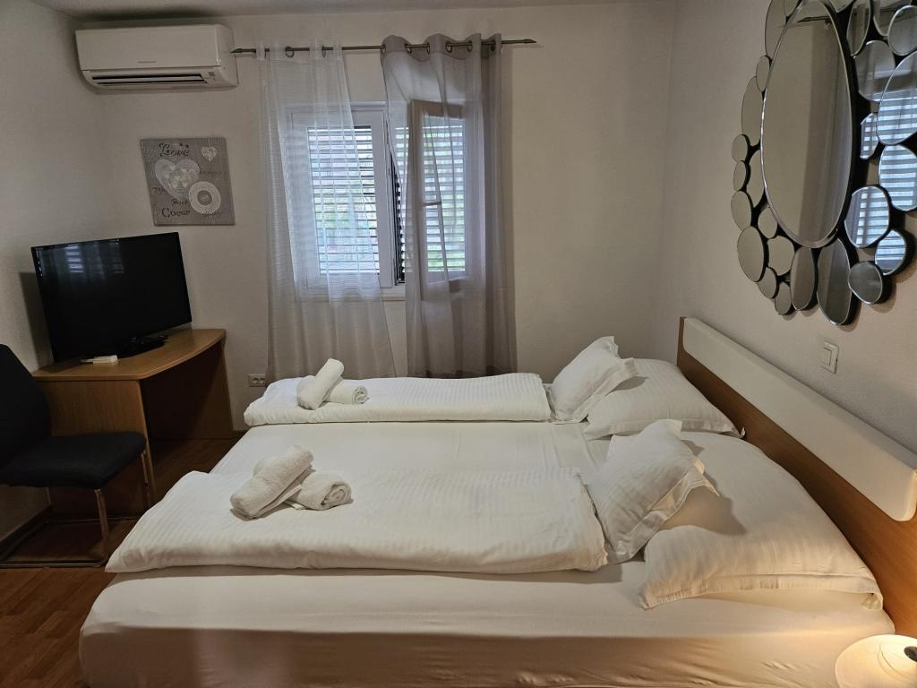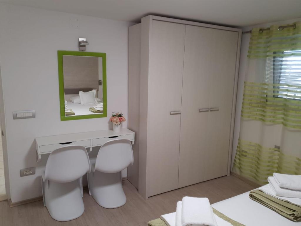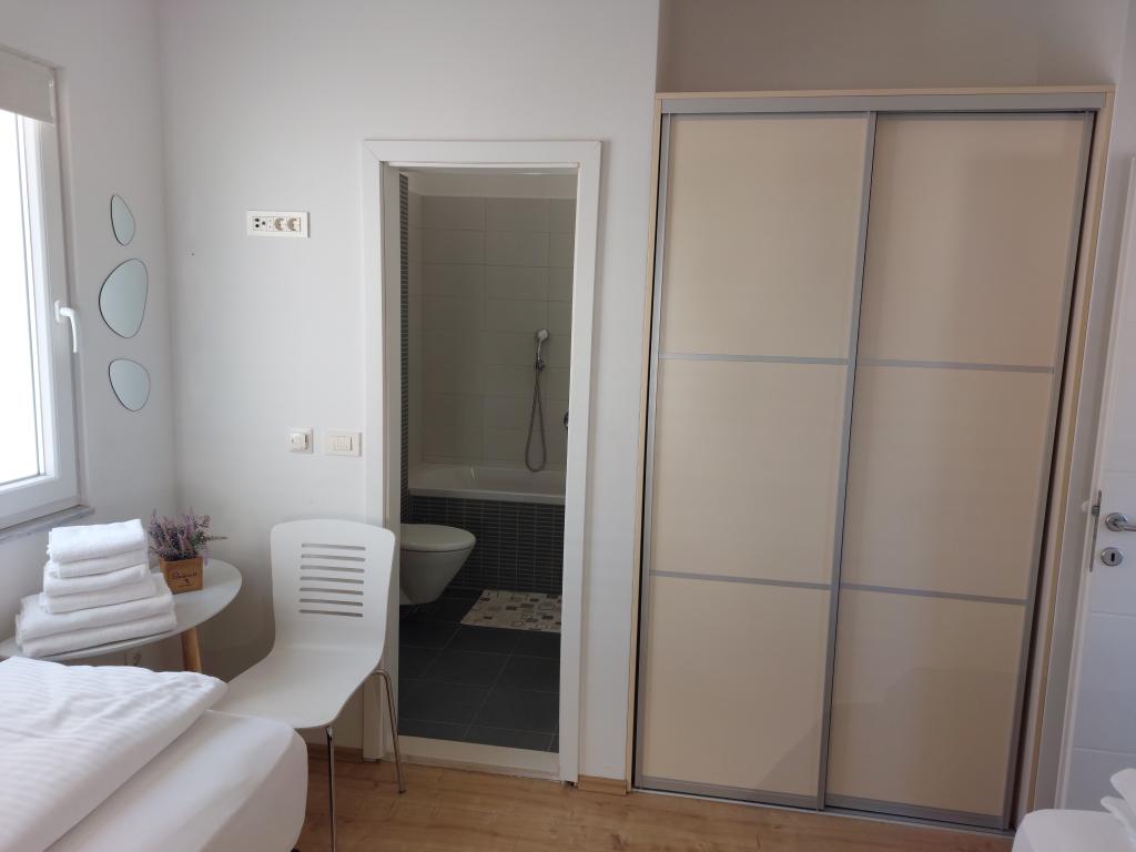 I nostri appartamenti sono moderni e completamente attrezzati per rendere il vostro soggiorno il più confortevole e spensierato possibile. Ogni appartamento include ferro e asse da stiro, asciugacapelli, macchina per il caffè filtro, bollitore e forno a microonde. Gli ospiti hanno inoltre a disposizione utensili completi per preparare e servire i pasti. Tutte le unità abitative dispongono di TV a schermo piatto, Wi-Fi gratuito e aree relax interne ed esterne. Gli alloggi sono climatizzati. Il parcheggio deve essere prenotato in anticipo a causa del numero limitato di posti auto all'interno della struttura. Lenzuola e asciugamani freschi vi attendono al vostro arrivo e vengono cambiati secondo gli accordi presi. Una culla per bambini è disponibile gratuitamente su richiesta. All'interno della struttura è presente un cortile in comune con mobili da esterno, circondato da piante mediterranee: un luogo ideale per rilassarsi. La struttura si trova in una zona tranquilla, in seconda fila rispetto al mare, a soli 2 minuti a piedi dalla spiaggia e a 10 minuti a piedi dal centro.