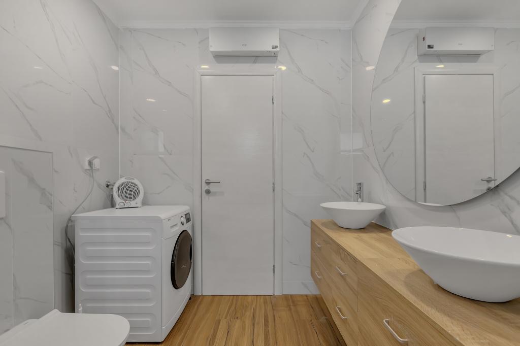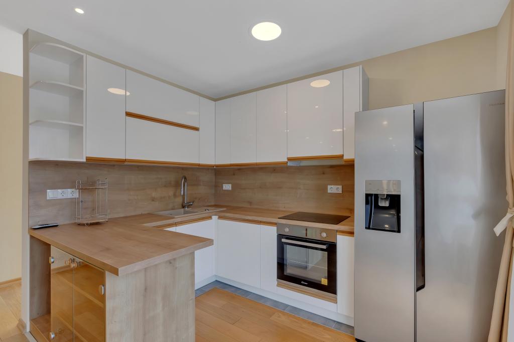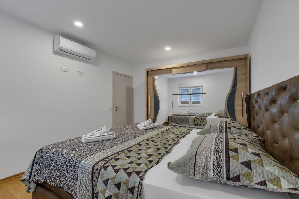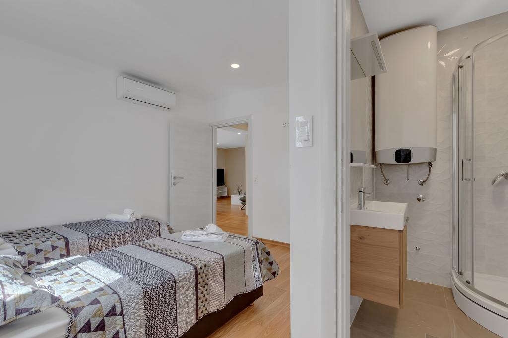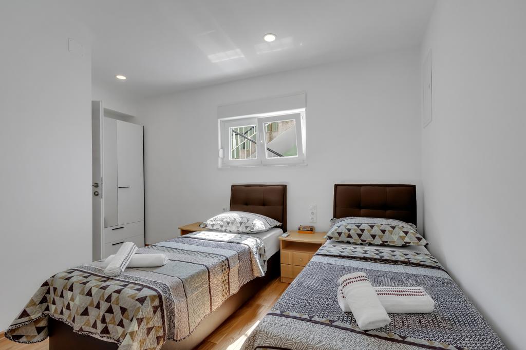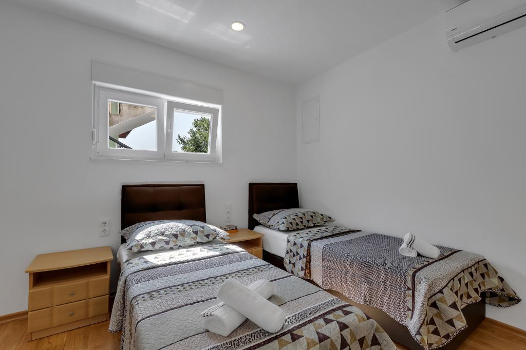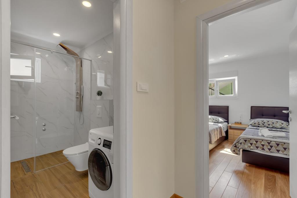Appartamento/appartamento completamente attrezzato con due camere (matrimoniale, letto 180x200 e l'altra con 2 letti separati che possono essere uniti se lo si desidera), 2 bagni, ampio soggiorno con cucina (insieme 40 m2) L'appartamento ha tutto il necessario per un lungo e soggiorno confortevole e si trova nel centro di Makarska