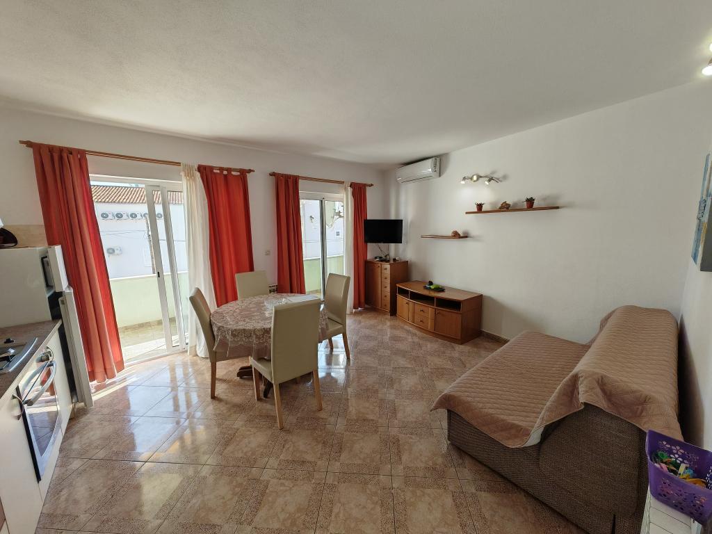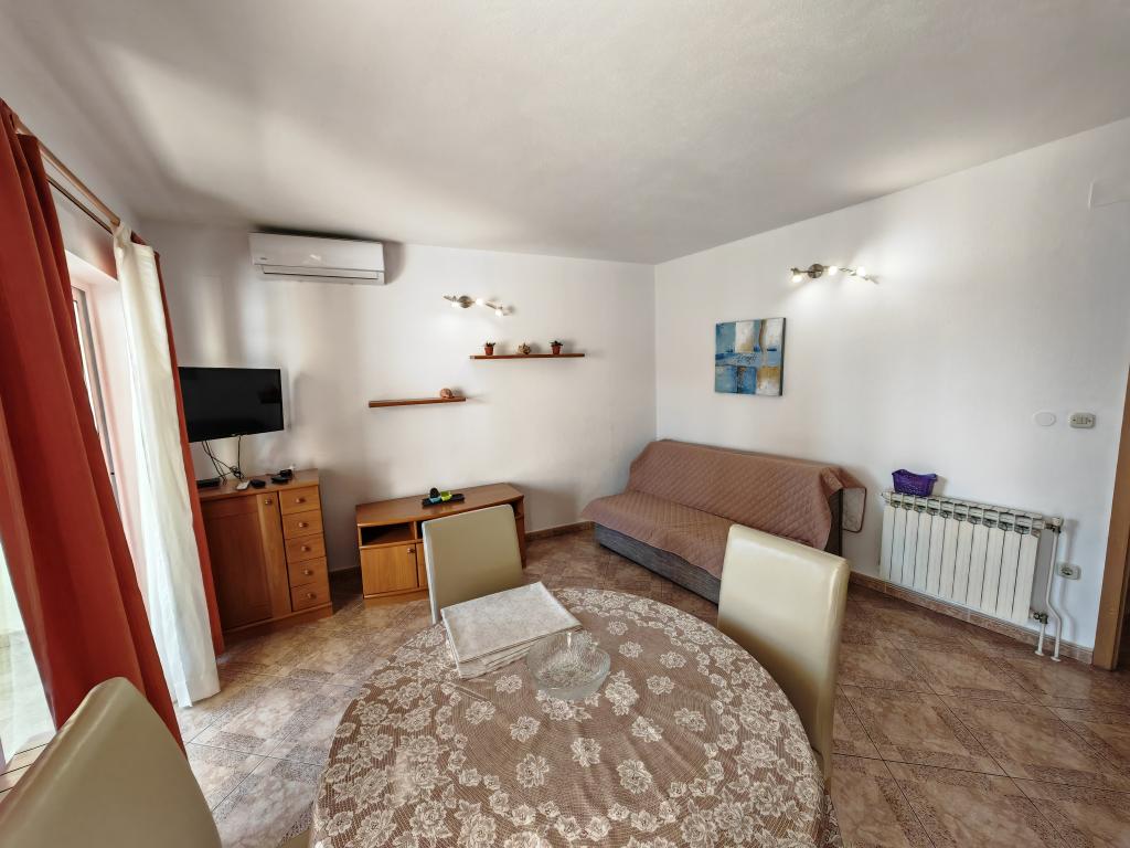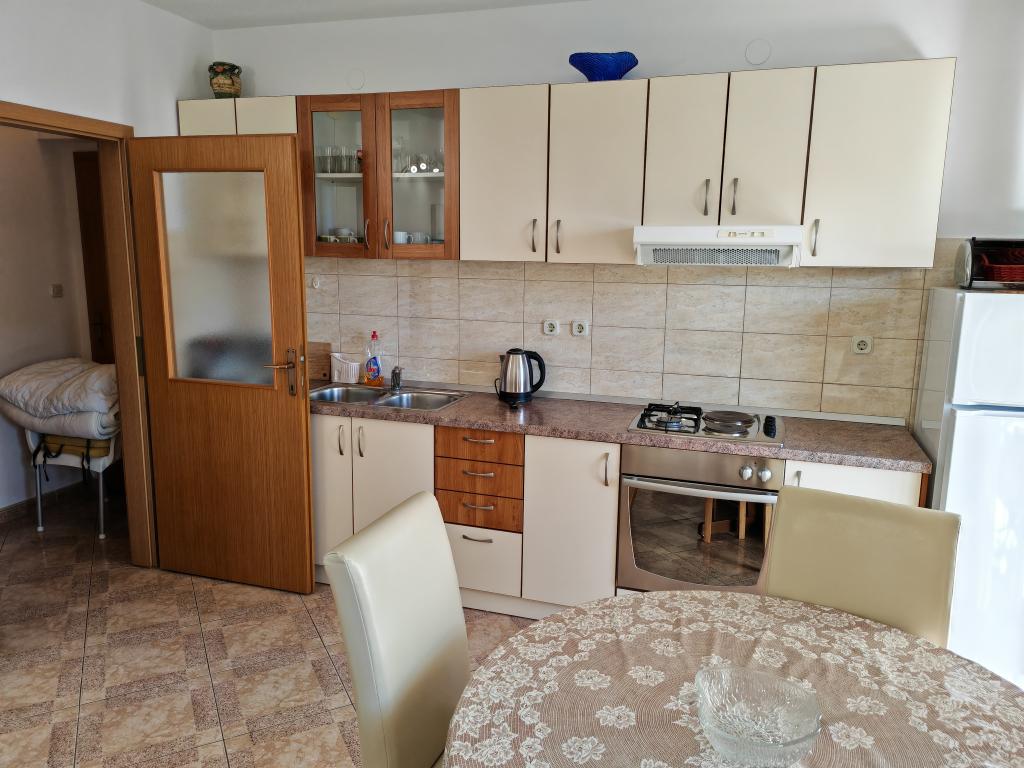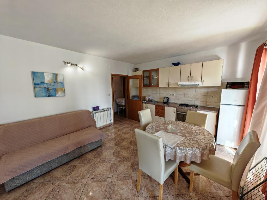Appartamento al primo piano di un condominio nelle immediate vicinanze della spiaggia, a circa 50 metri di distanza. Ampio balcone con vista mare, Wi-Fi gratuito, parcheggio gratuito di fronte all'edificio. L'appartamento è adatto per 3 adulti, una coppia con uno o due bambini piccoli. Posizione eccellente, ben attrezzato e arredato.