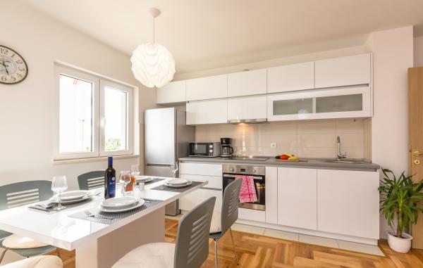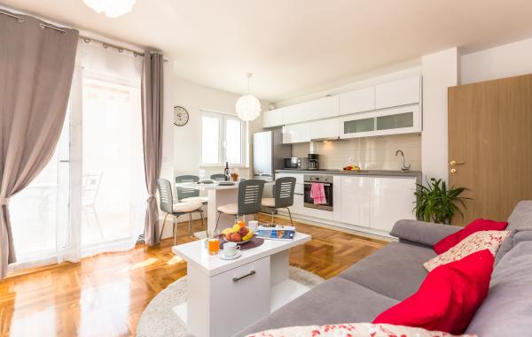 Completamente attrezzato e moderno appartamento a Makarska. Cucina, 2 camere, bagno, soggiorno, terrazzo, posto auto. L'appartamento è situato in un edificio di nuova costruzione al piano terra un ingresso separato. Aria condizionata, internet incluso nel prezzo. L'appartamento si trova a 5 min. a piedi dalla spiaggia, al centro 10min. camminare. Parziale vista sul mare, l'appartamento è orientato a sud. Entra per appartamento dalle ore 15: 00h, check out fino alle 10: 00h. Scegliendo il nostro appartamento avete la possibilità di noleggiare biciclette elettriche per la ricreazione, anche in grado di offrire trasversale dall'aeroporto a Makarska tutto questo costo aggiuntivo.