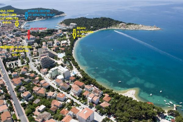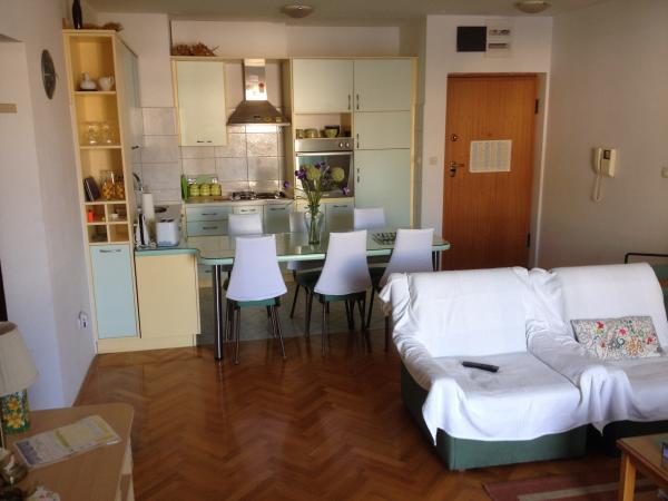 L'appartamento è situato nel centro di Makarska. Si trova a 5 minuti a piedi dalla stazione degli autobus e 5 minuti a piedi dalla spiaggia. L'appartamento si trova al primo piano, mentre al piano terra si trova una grande prodotti alimentari. Ci vogliono 10 minuti per raggiungere il centro storico di Makarska. Centro sportivo dista solo 15 minuti a piedi da casa. Discoteche per l'intrattenimento si trovano a 15 minuti a piedi da casa. L'appartamento è arredato e al suo interno ci sono due camere da letto, bagno, soggiorno, ampio terrazzo, cucina e sala da pranzo.