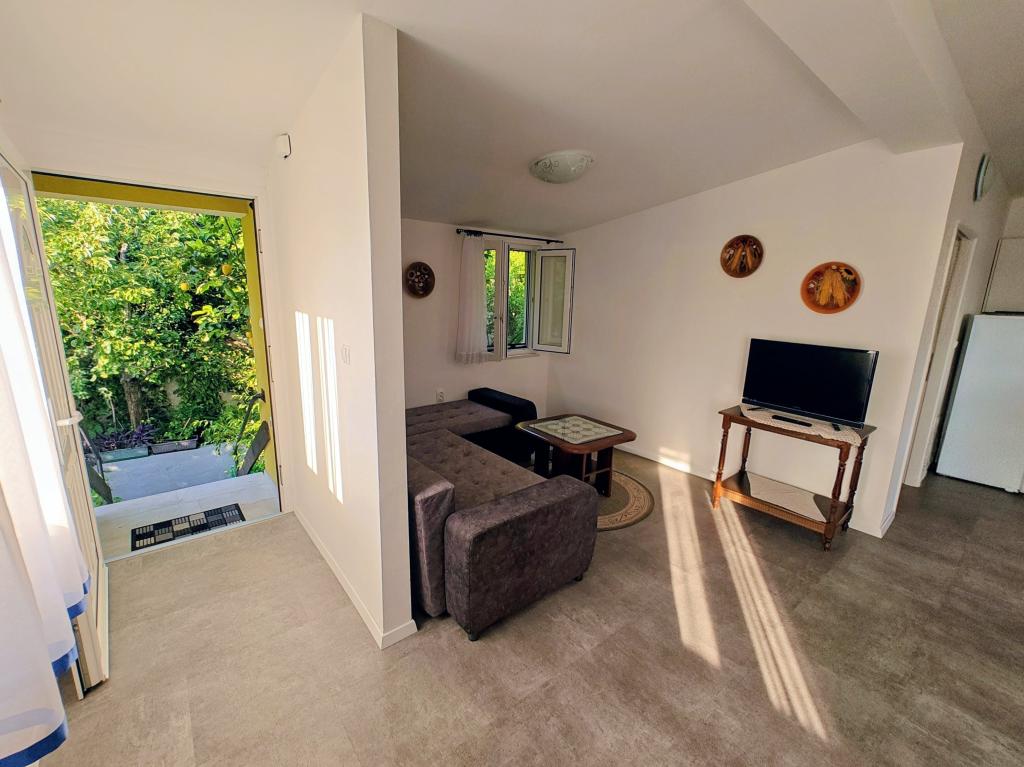 Ci troviamo in zona Poljana, in una strada tranquilla e poco trafficata, a 100 metri dal mare e ad 1 km dal centro cittadino. Sotto casa c'è un lungomare e una pista ciclabile che portano fino in città. Nelle immediate vicinanze si trova anche una spiaggia, in parte di ciottoli e in parte di cemento, senza ombra. La casa è composta da 3 appartamenti completamente attrezzati con terrazze con vista sul mare e giardini verdi. Ogni appartamento dispone di ingresso indipendente, aria condizionata, Wi-Fi, TV LCD, lavatrice...