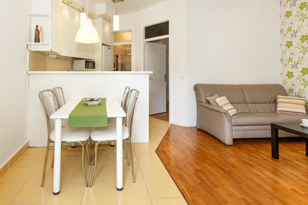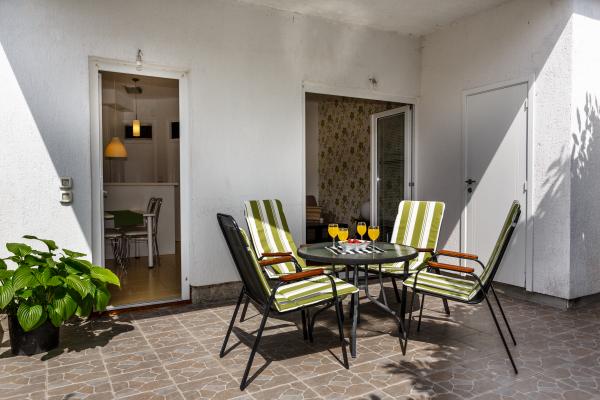 Appartamento completamente attrezzato per 4 persone in una zona tranquilla di Malinska. Grande terrazza spaziosa con un sacco di verde. Adatto a famiglie con bambini piccoli. Nelle vicinanze c'è un negozio, un parco giochi, una spiaggia e una grotta stessa.