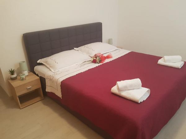 Appartamenti modernamente attrezzati in una tranquilla zona residenziale di Marina. La struttura è a 2 minuti a piedi dalla spiaggia ea 10 minuti a piedi dal centro. I servizi includono barbecue, parcheggio gratuito, terrazza e balcone con splendide viste sul mare. Ogni appartamento ha una sala da pranzo, una cucina, un soggiorno, un bagno, due camere da letto e un balcone e una terrazza. La cucina è attrezzata con forno, frigorifero, piano cottura, forno a microonde, lavastoviglie e bollitore elettrico. Ogni camera ha un letto matrimoniale. Inoltre, ogni appartamento ha un bagno con lavatrice. All'interno degli appartamenti di Ann sono disponibili la connessione Wi-Fi gratuita, asciugamani e lenzuola.